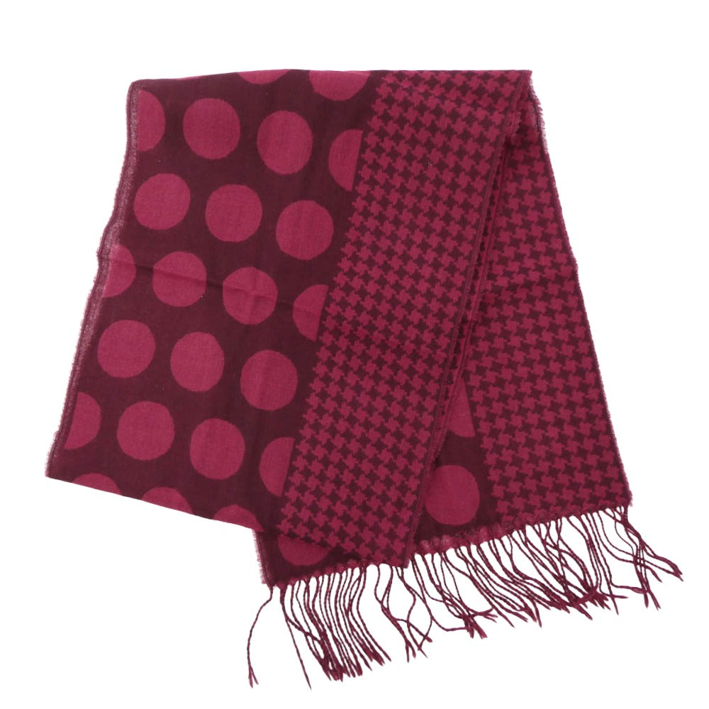 Yohji Yamamoto POUR HOMME ヨウジヤマモトプールオム HC-L02-155 ウール ドット?ハウンドトゥース ストール ワインレッド系【中古】
