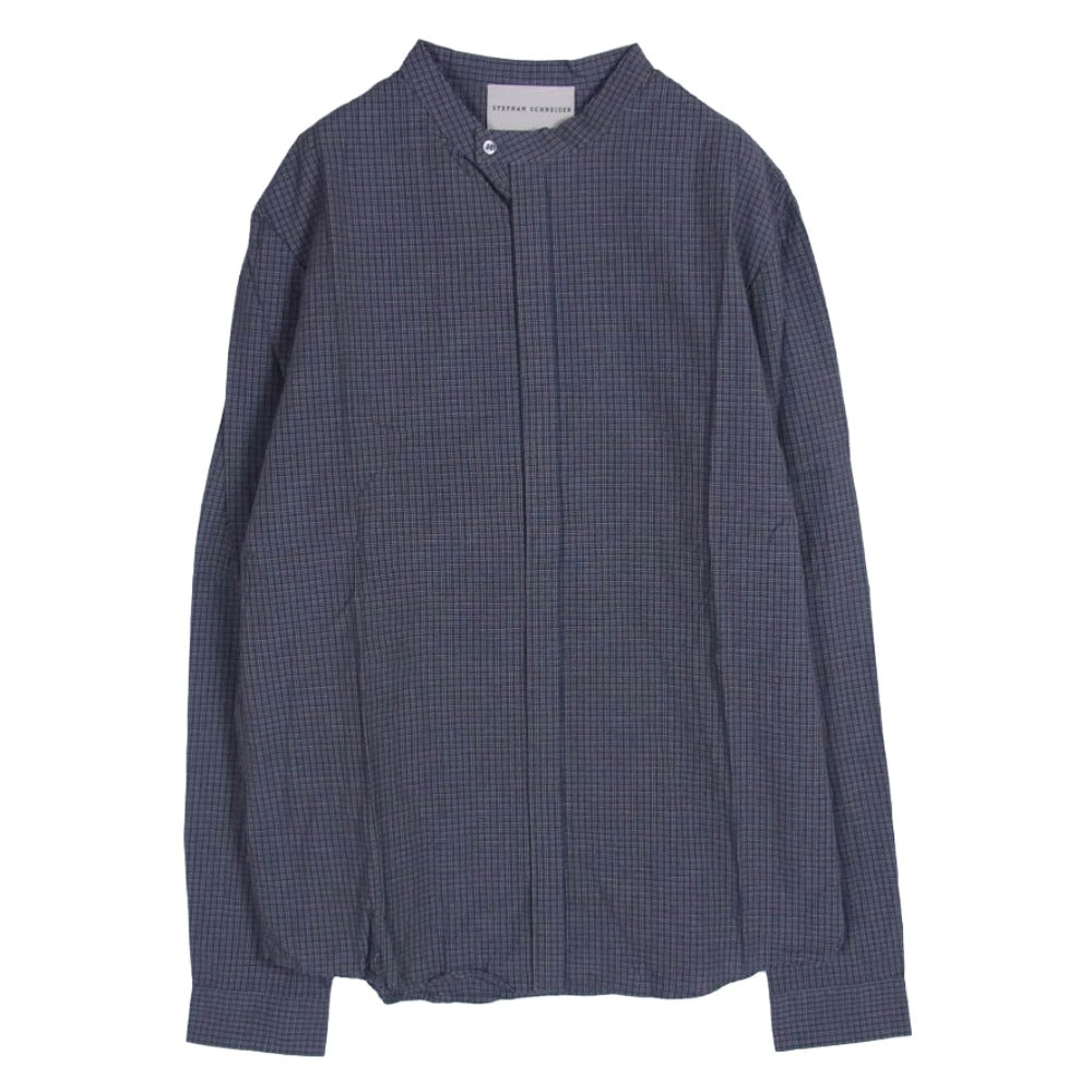 STEPHAN SCHNEIDER ステファンシュナイダー ウール 比翼 オープンカラー 開襟 長袖 シャツ ネイビー系 4【中古】