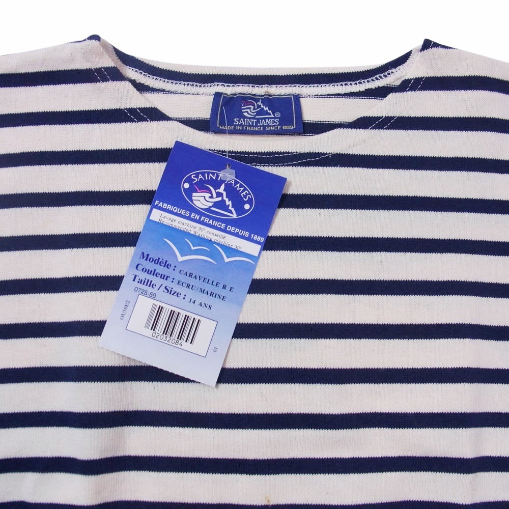 SAINT JAMES セントジェームス デッドストック フランス製 80s 90s CARAVELLE キャラベル バスクシャツ 長袖 Tシャツ サイズ14 オフホワイト系 14ANS【極上美品】【中古】