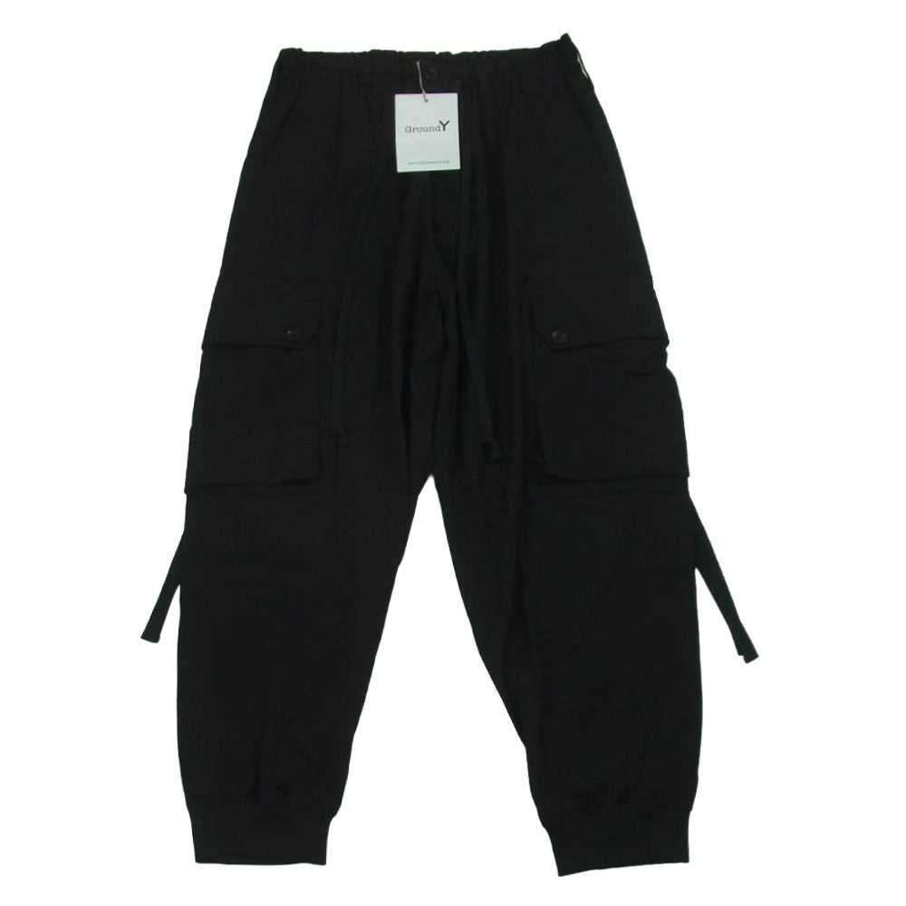 Yohji Yamamoto ヨウジヤマモト 24AW GO-P07-100-1 Ground Y グラウンドワイ WOOL GABARDINE STANDARD RIBBED HEM CARGO リブ カーゴ パンツ ブラック系 03【新古品】【未使用】【中古】