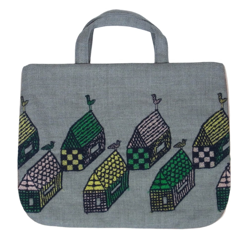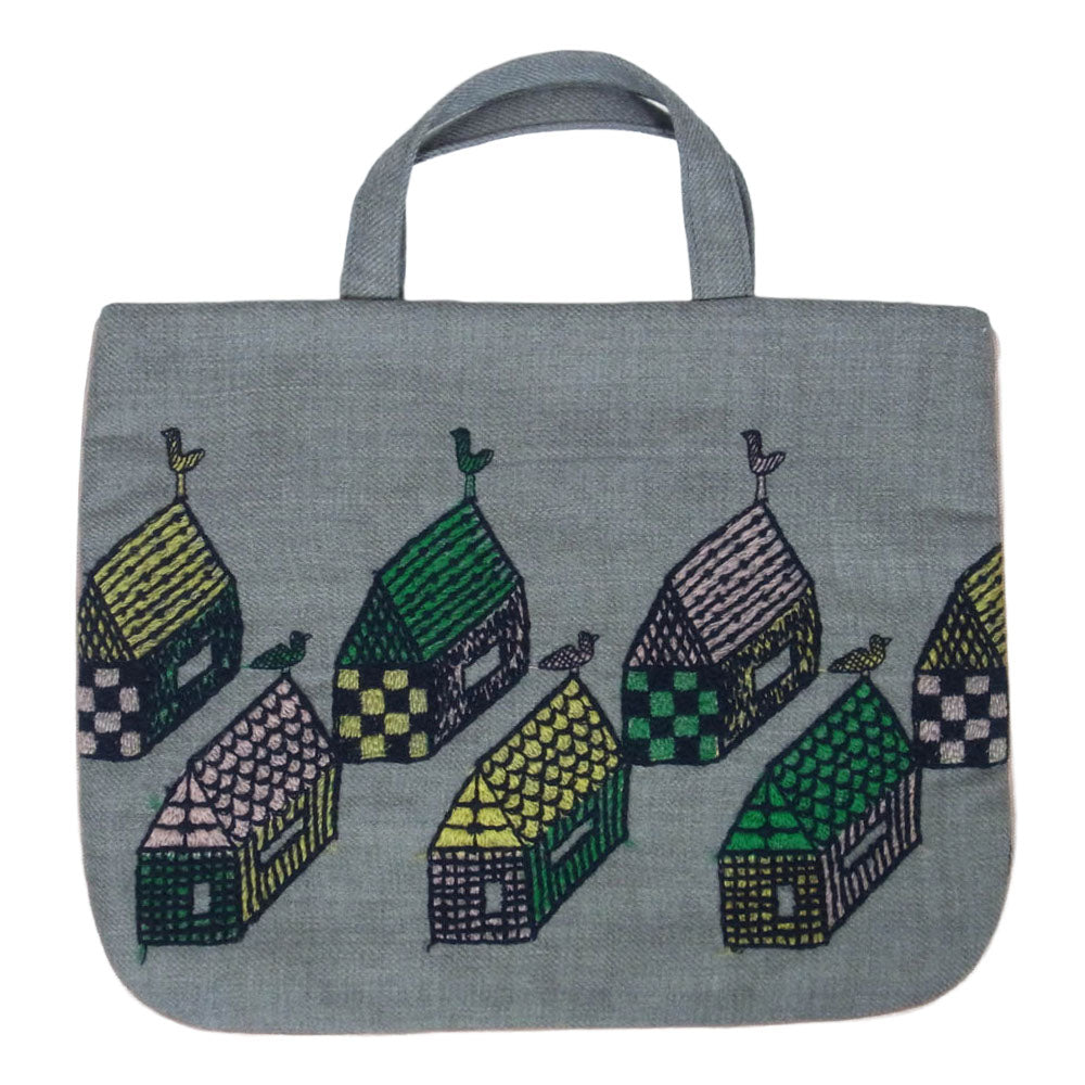 mina perhonen ミナペルホネン aba7160ps village ヴィレッジ トート ハンド バッグ グレー系【中古】