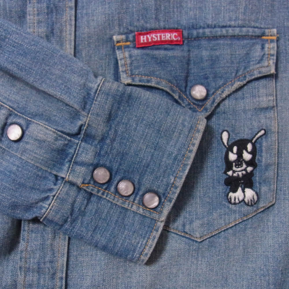 HYSTERIC GLAMOUR ヒステリックグラマー 0261AH04 ステッチ 刺繍 シャンブレー ウエスタン 長袖 シャツ ライトブルー系 M【中古】