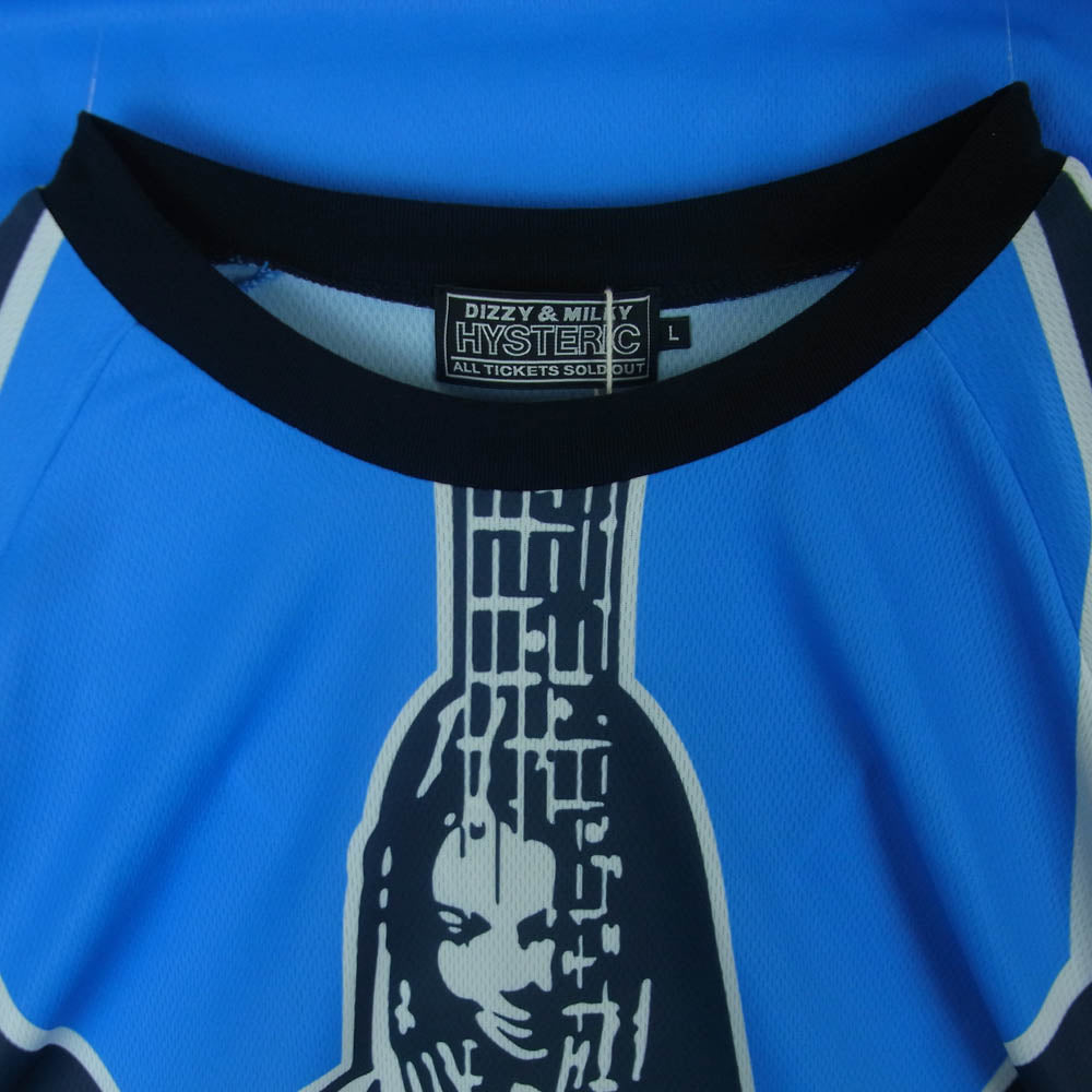 HYSTERIC GLAMOUR ヒステリックグラマー 26SS 02261CL08 HIGH VOLTAGE メッシュ 長袖 カットソー ライトブルー系 L【極上美品】【中古】
