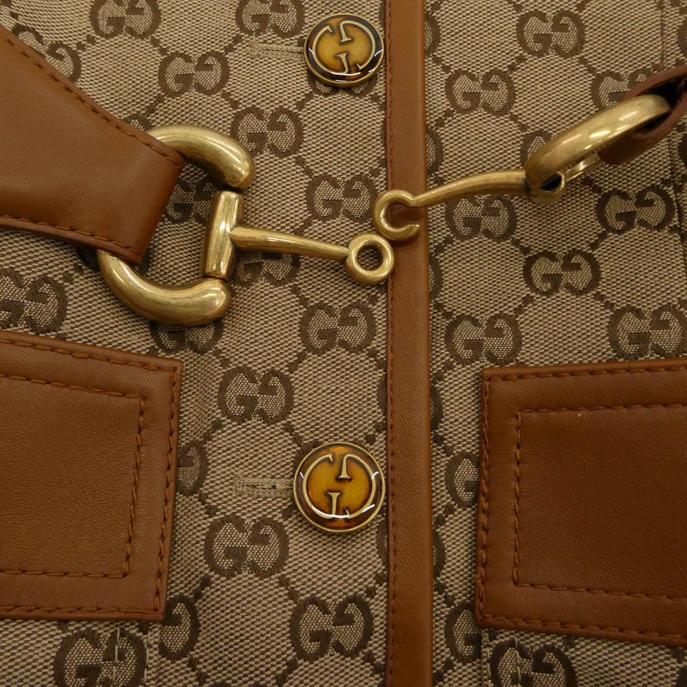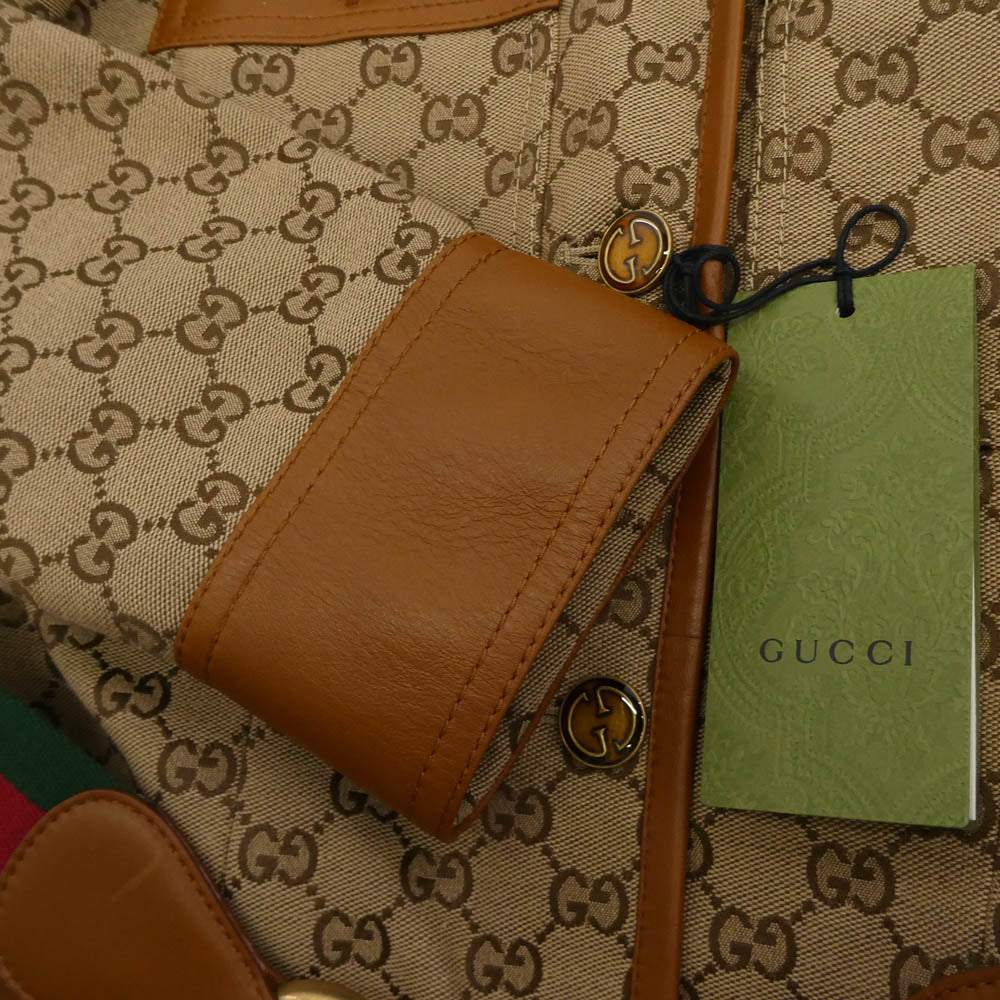 GUCCI グッチ GGキャンバス シェリーライン レザー ジャケット ライトブラウン系 マルチカラー系 40【新古品】【未使用】【中古】