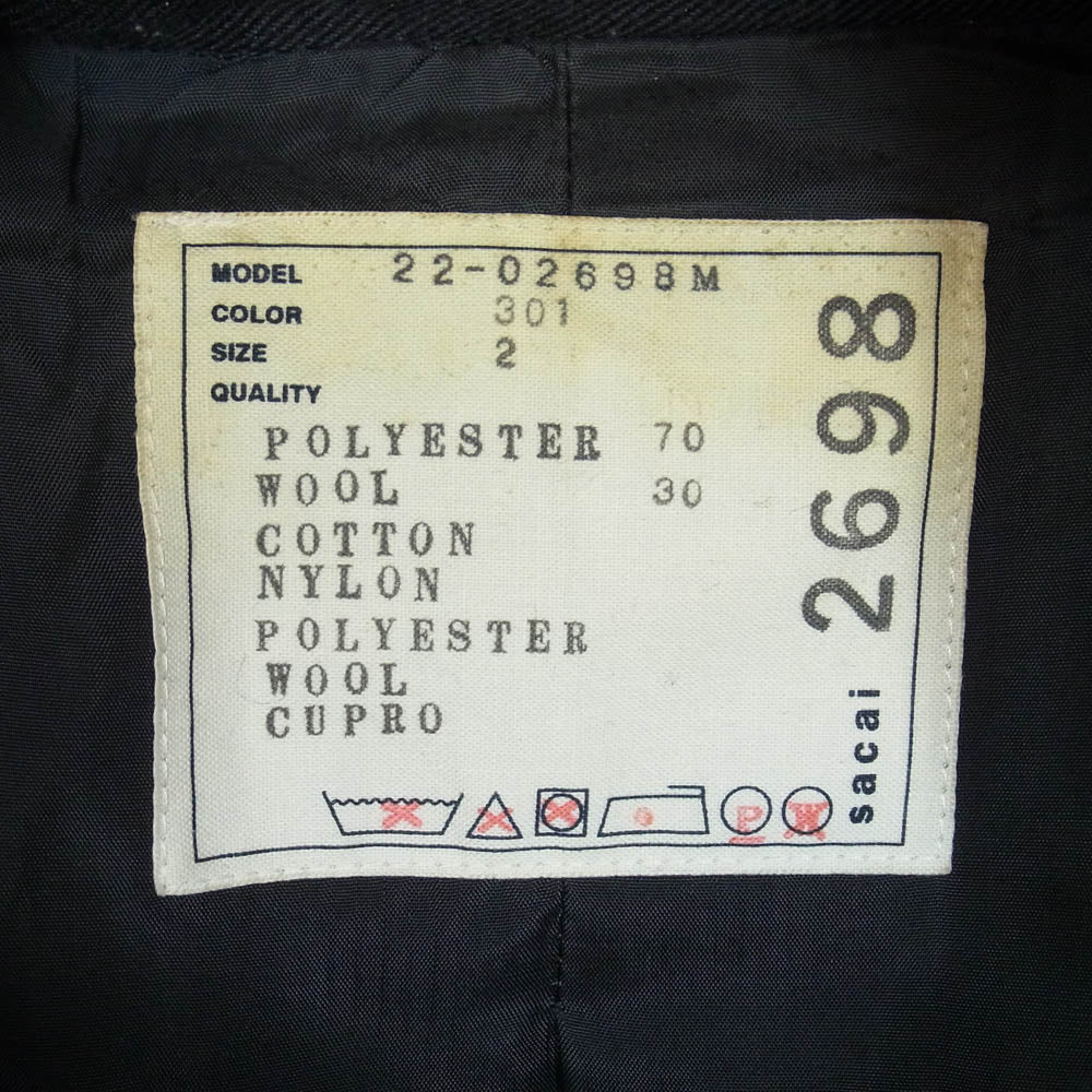 Sacai サカイ 22AW 22-02898M padded blouson パデッド ブルゾン 中綿 ジャケット フーデッド コート ブラック系 2【中古】