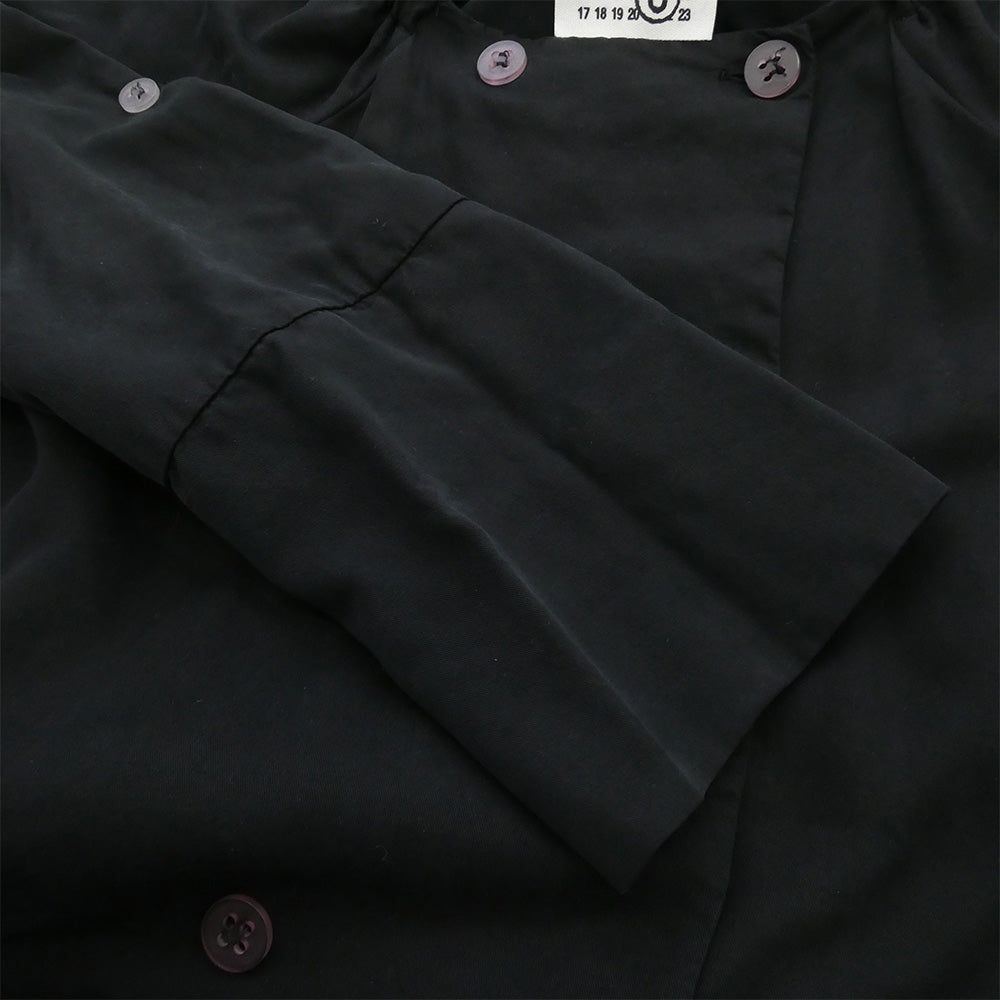 MAISON MARTIN MARGIELA メゾンマルタンマルジェラ 32kokoaa026 MM6 ここのえタグ リヨセル ギャザー スクエアネック ダブルブレスト ベルテッド コート ブラック系 38【中古】