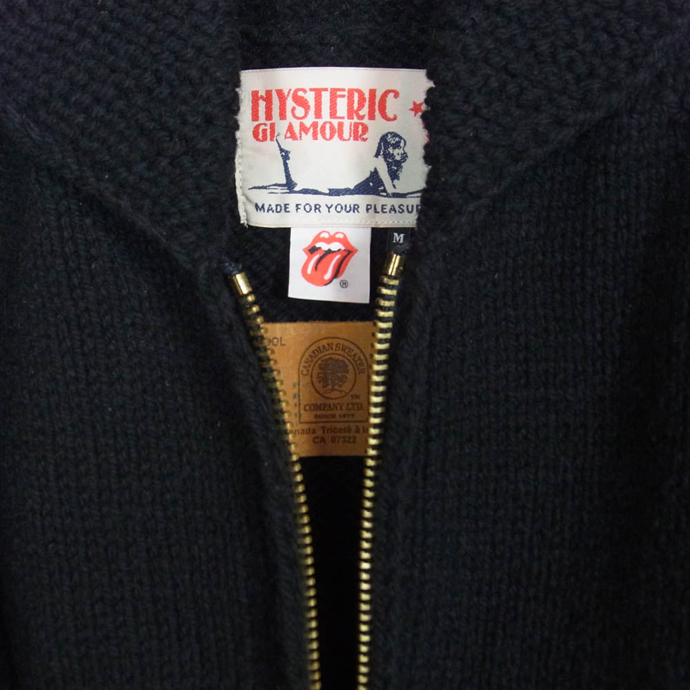 HYSTERIC GLAMOUR ヒステリックグラマー 0223ND01 CANADIAN SWEATER カナディアンセーター ROLLING STONES TANG ローリングストーンズ タン 編込 カウチン ニット ジップアップ ジャケット ブラック系 M【中古】