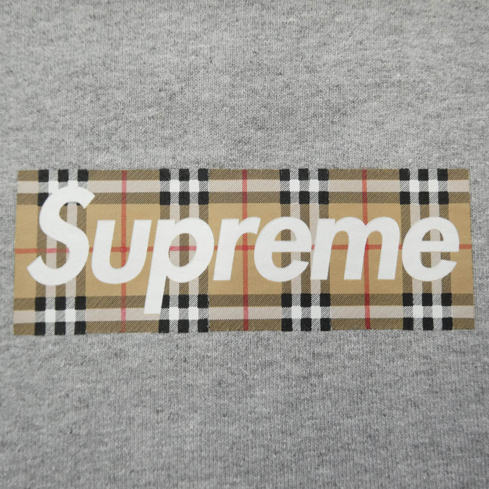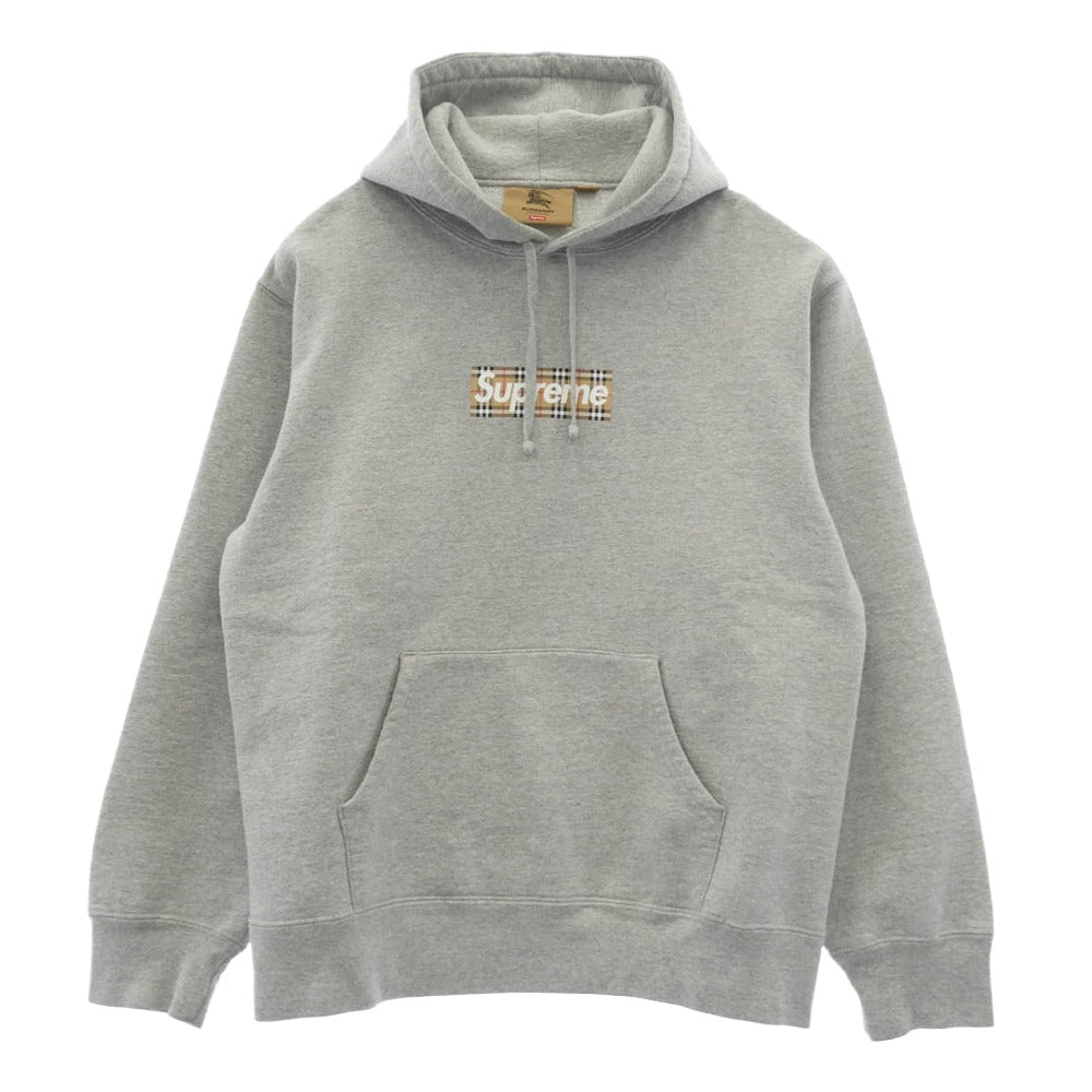 Supreme シュプリーム 22SS Burberry Box Logo Hooded Sweatshirt バーバリー ボックスロゴ プルオーバーパーカー グレー系 M【中古】