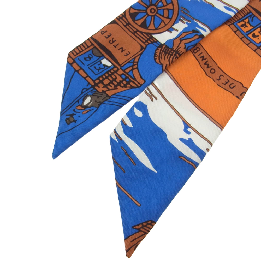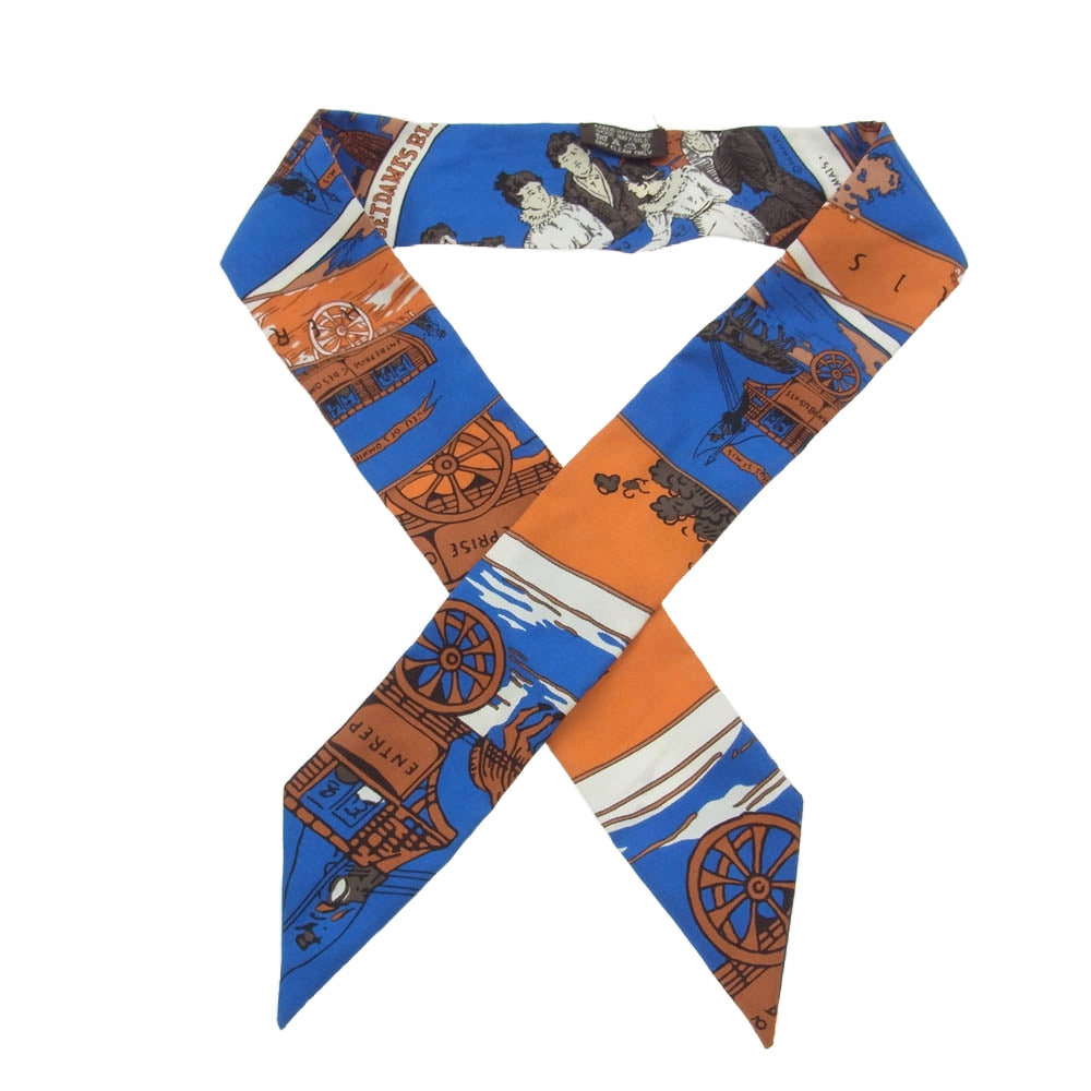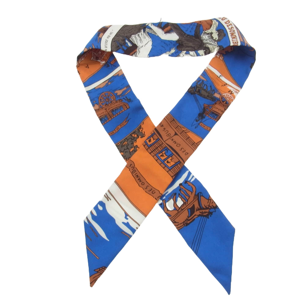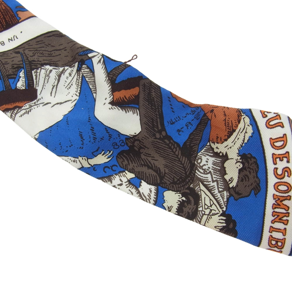 HERMES エルメス ツイリー タイスカーフ JEU DES OMNIBUS ET DAMES BLANCHES オムニバス 白い貴婦人のゲーム オレンジ系 ブルー系【中古】