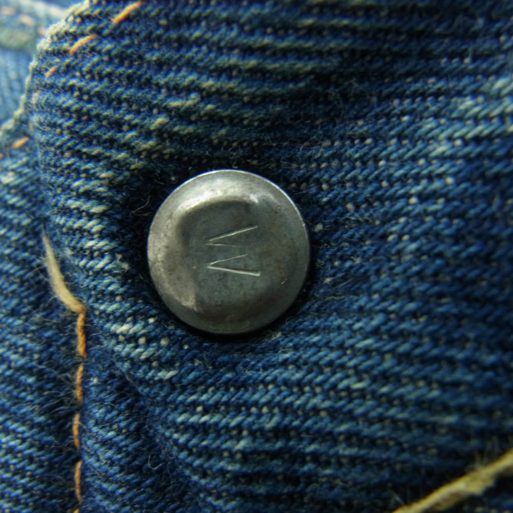 特記事項 ※両前ポケット口に破れ、ダメージがございます。※ポケットや所々にシミ汚れはございます。 ※ヴィンテージ特有の経年変化(汚れ、毛羽立ち、スレ、生地アタリ、ほつれ等)がございます。年代物ですので各部状態にご不安な方、神経質な方、細部まで完璧な状態をお求めの方はご購入をお控え下さい。 ※色残り4/10程度/パッチ無し/両面タブ/不均等V/ボタン裏W/足長R/コインポケット裏シングル/Vステッチ//隠し銅リベット/センターループ/裾シングルステッチ(詳細不明)