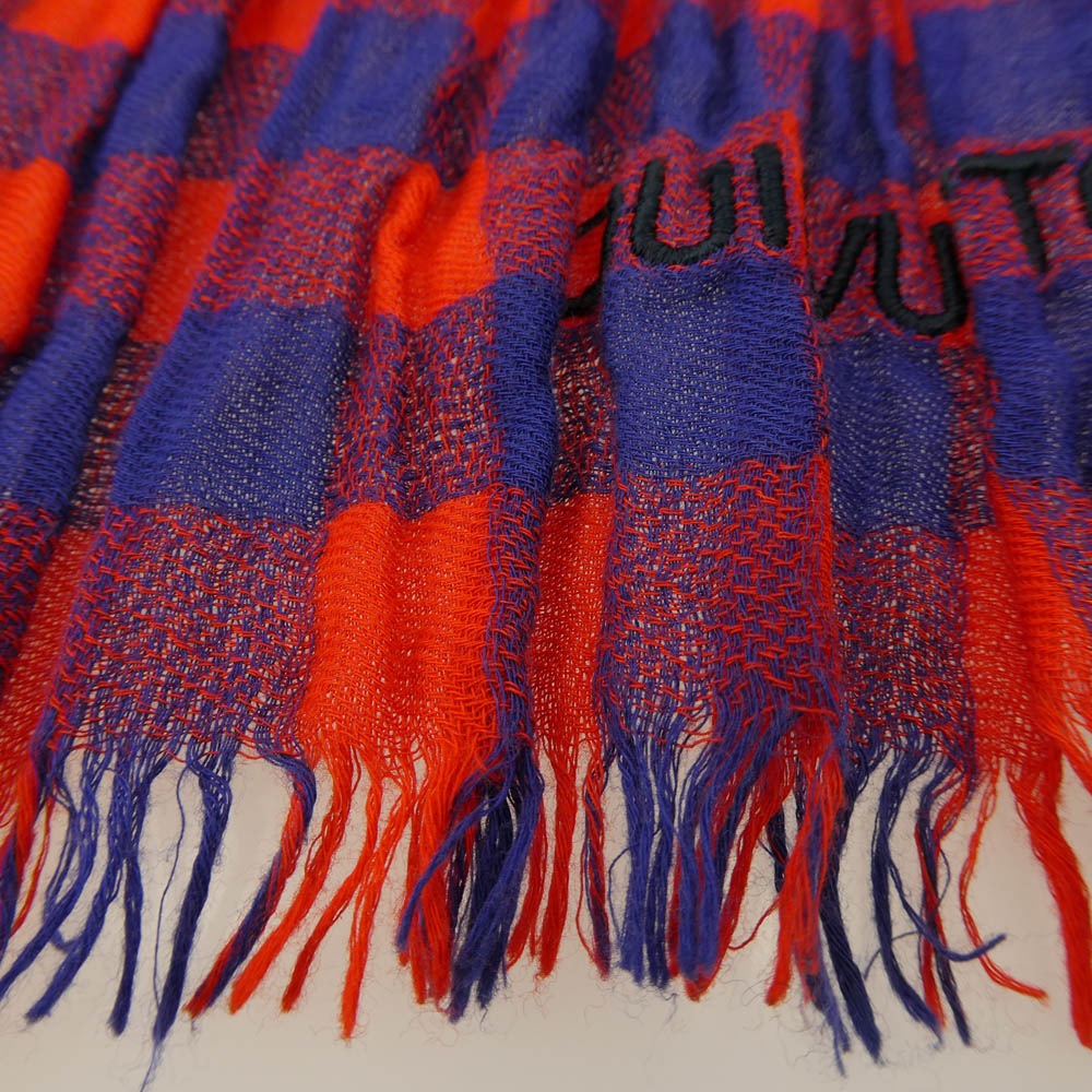 LOUIS VUITTON ルイ・ヴィトン MP0894 エトール マサイ チェック ストール レッド系 ブルー系【中古】