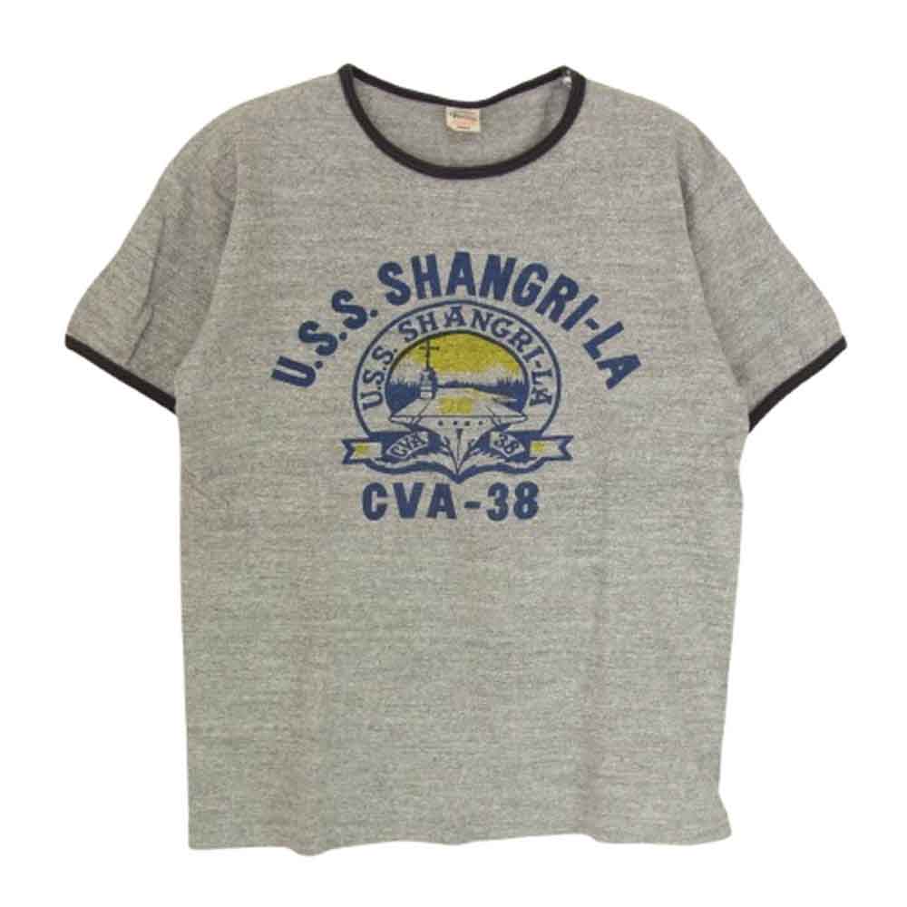 WAREHOUSE ウエアハウス U.S.S. SHANGRI-LA プリント リンガー Tシャツ グレー系 S【中古】
