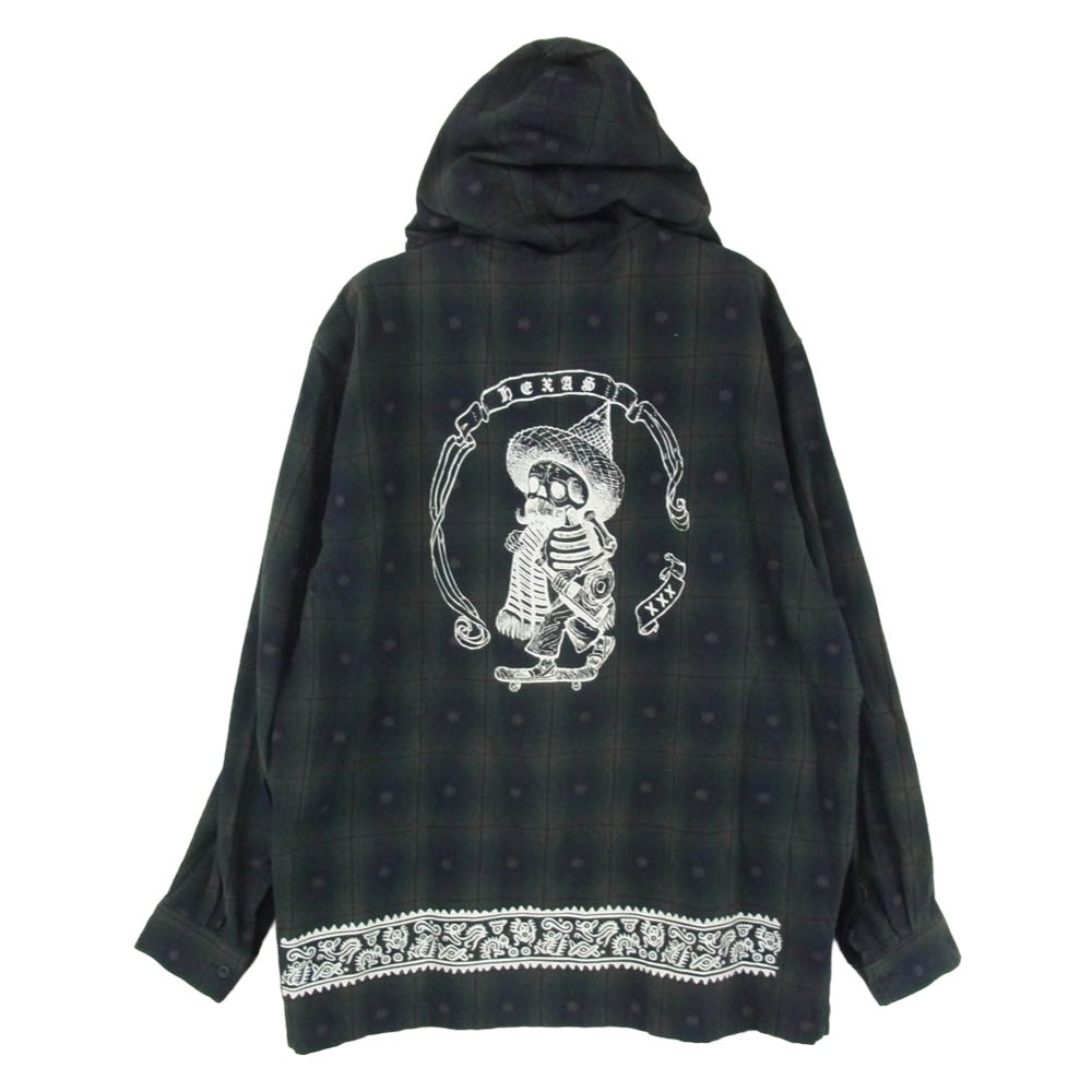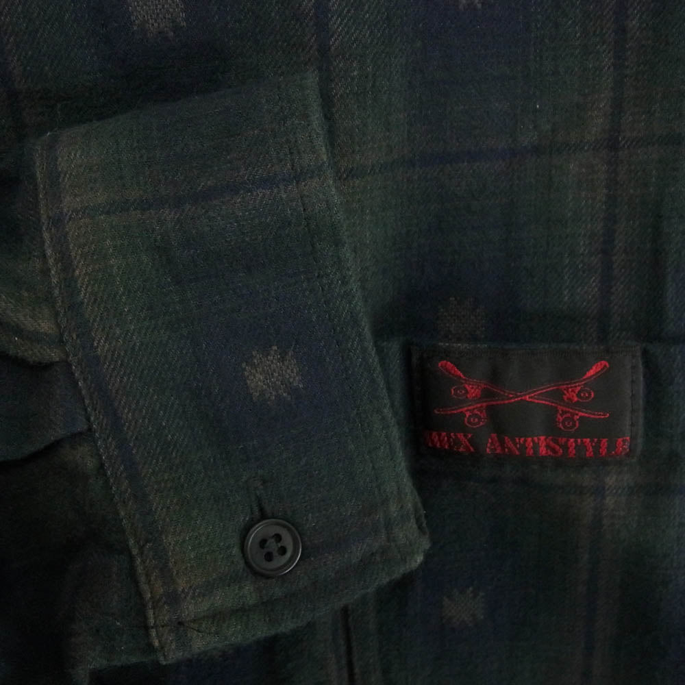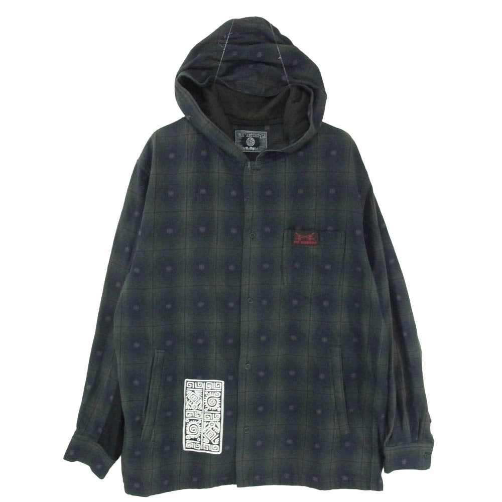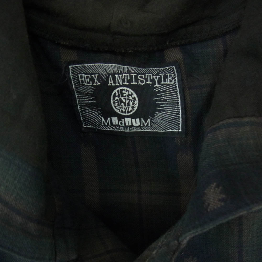 HEX ANTISTYLE ヘックスアンチスタイル フード付き バックプリント チェック 長袖 シャツ グリーン系 M【中古】