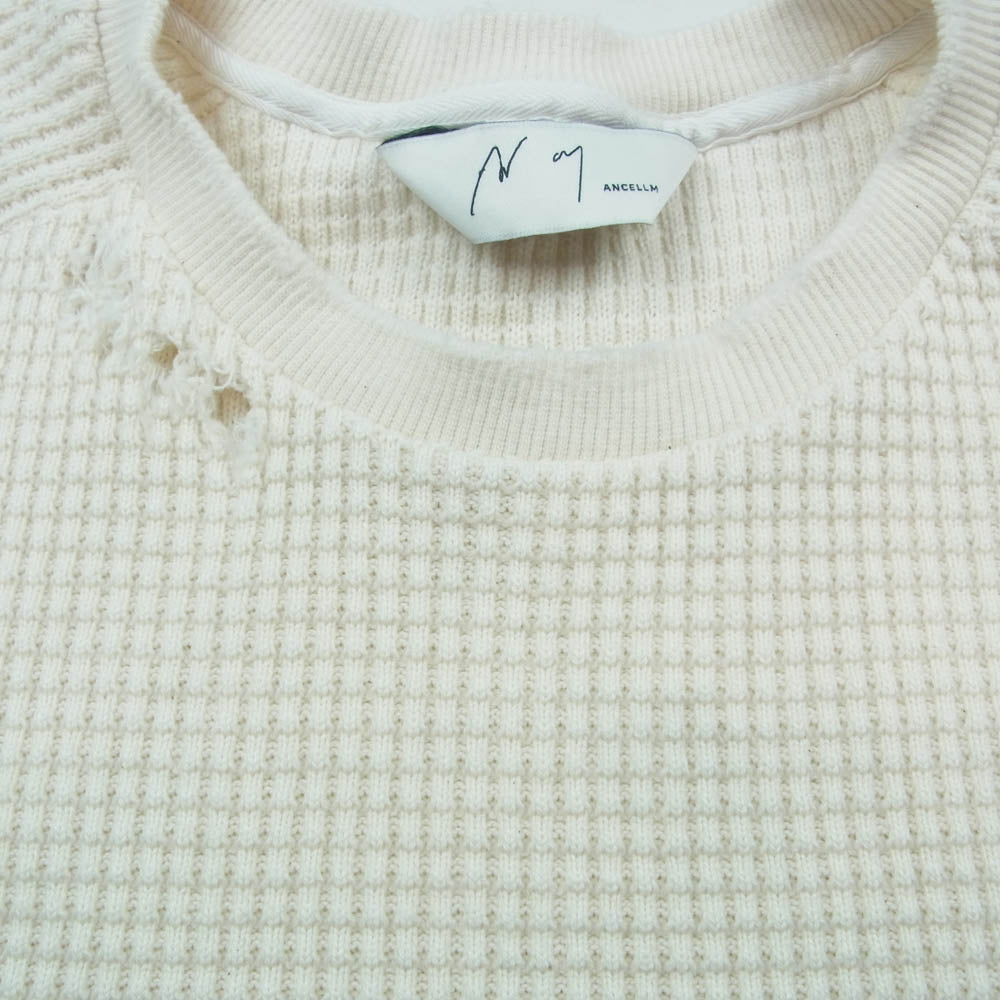 ANCELLM アンセルム ANC-CT35 DAMAGE HEAVY WAFFLE OVERSIZED LS T-SHIRT IVORY ダメージ加工 ヘビーワッフル オーバーサイズ カットソー ホワイト系 2【中古】