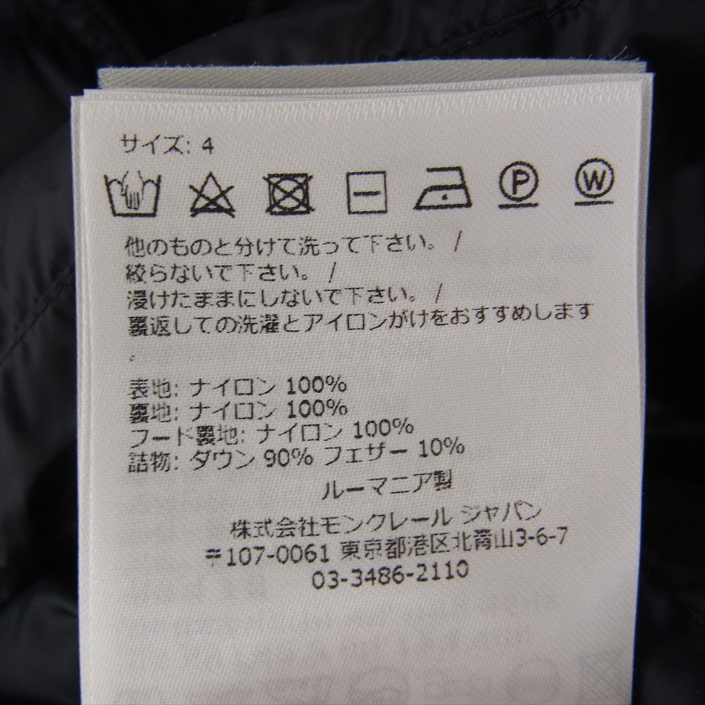 MONCLER モンクレール I10931C10100 国内正規品 BARBEL バーベル ダウン コート ブラック系 4【新古品】【未使用】【中古】
