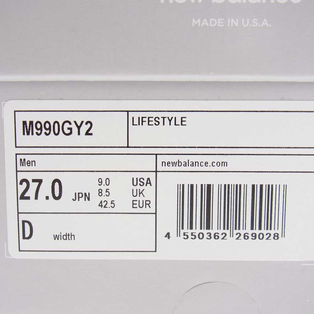 NEW BALANCE ニューバランス M990GY2 USA製 990 V2 スエード メッシュ ローカット スニーカー グレー系 27cm【新古品】【未使用】【中古】