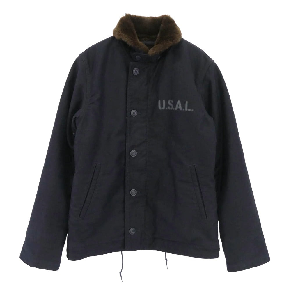 商品名 20521-467 N-1 USAL ステンシル ロゴ プリント ファーライナー付 ミリタリー デッキ ジャケット ネイビー