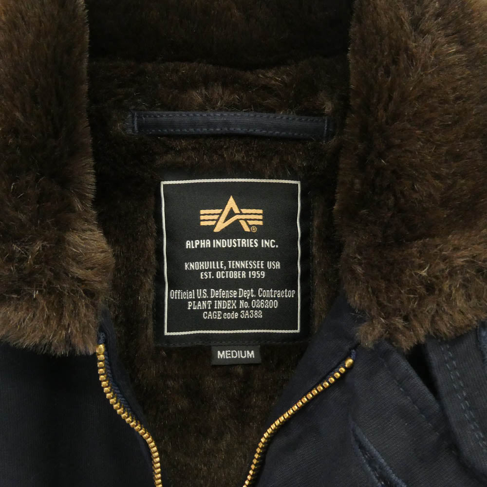 ALPHA アルファ 20521-467 N-1 USAL ステンシル ロゴ プリント ファーライナー付 ミリタリー デッキ ジャケット ネイビー ダークネイビー系 M【中古】