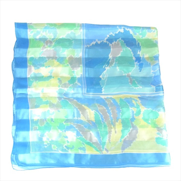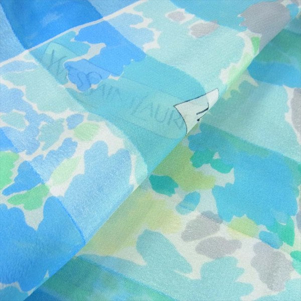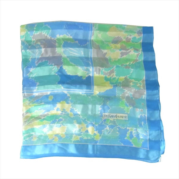 YVES SAINT LAURENT イヴサンローラン シルク ストール スカーフ ロゴ 薄手 ブルー系【中古】