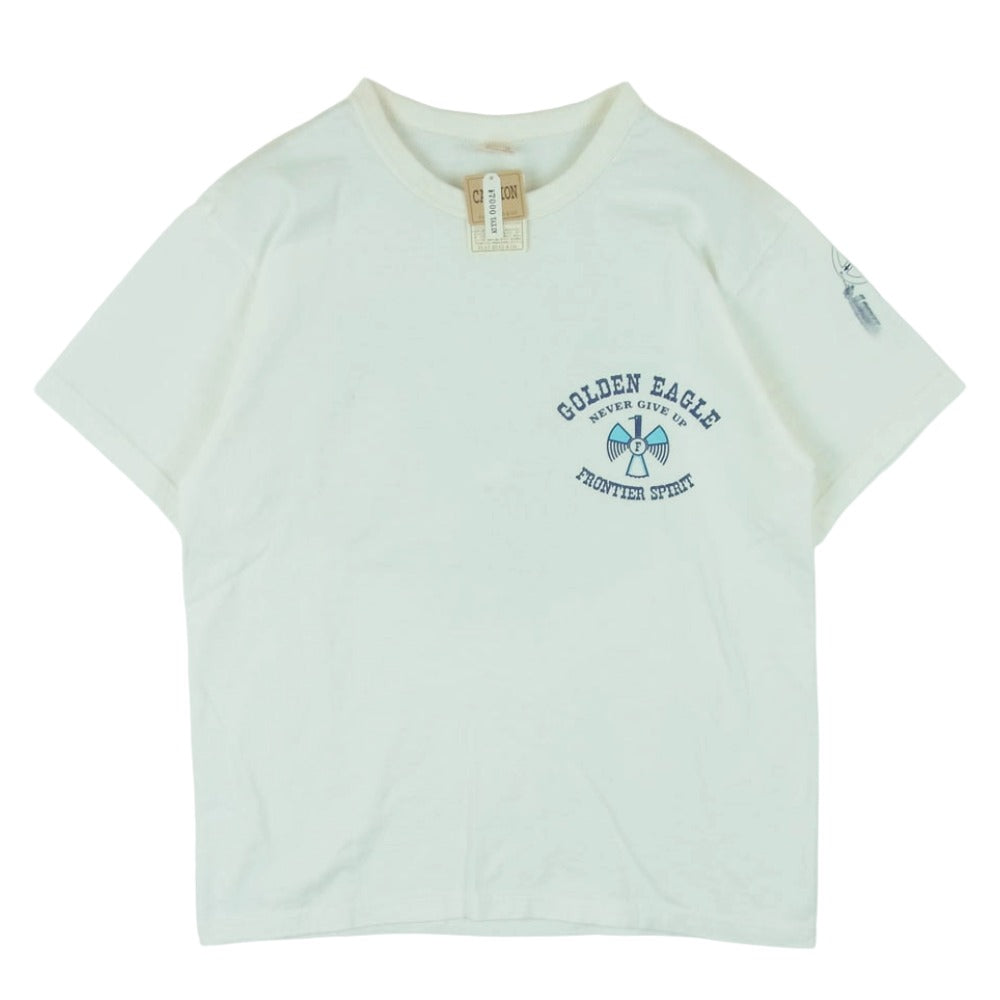 THE FLAT HEAD ザフラットヘッド GOLDEN EAGLE ゴールデンイーグル プリント クルーネック 半袖 Tシャツ オフホワイト系 38【中古】