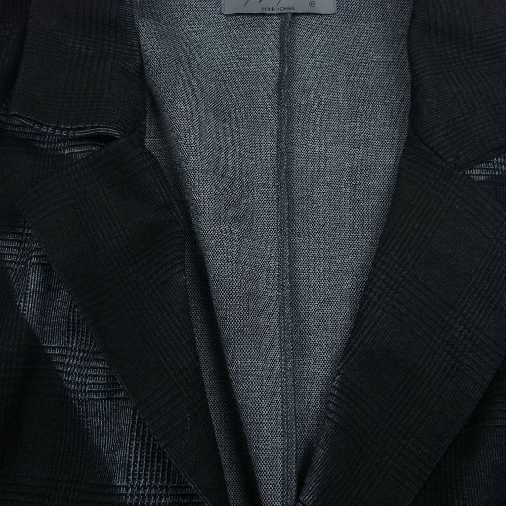 Yohji Yamamoto POUR HOMME ヨウジヤマモトプールオム HG-T74-983 JQ GLENCHECK LONG JACKET ジャカード グレンチェック ロング ジャケット チェスターコート ブラック系 3【中古】