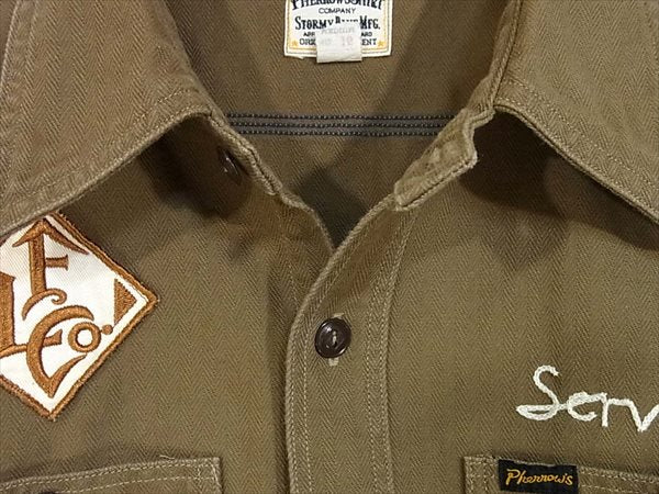 Pherrow's フェローズ 721WS-C カスタム シャツ ワーク ワークシャツ カーキ(オリーブグリーン)系 M【中古】