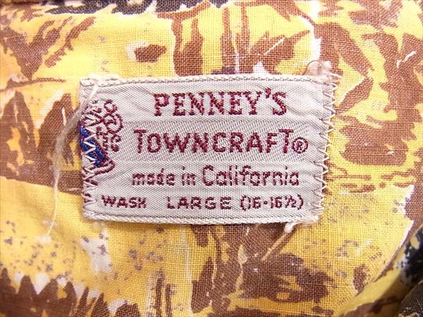 ぺニーズ タウンクラフト ヴィンテージ 総柄 半袖シャツ イエロー系 L【中古】
