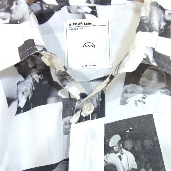 | A.FOUR Labs プリントシャツです!未使用の状態ですので、安心しておススメいたします。フォトプリントが目を引くシャツは、落ち着いた色味で様々な着こなしが楽しめます! |