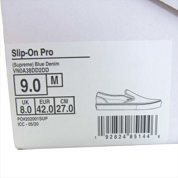 Supreme シュプリーム バンズ VANS 20SS VN0A38DD2DD LIP-ON Hole Punch BLUE DENIM ホールパンチ デニム スリッポン スニーカー インディゴブルー系 27cm【新古品】【未使用】【中古】