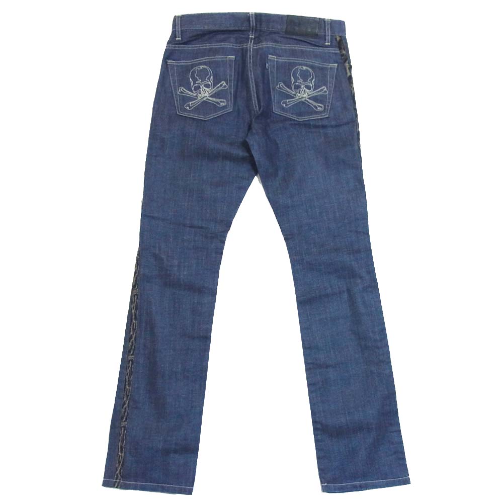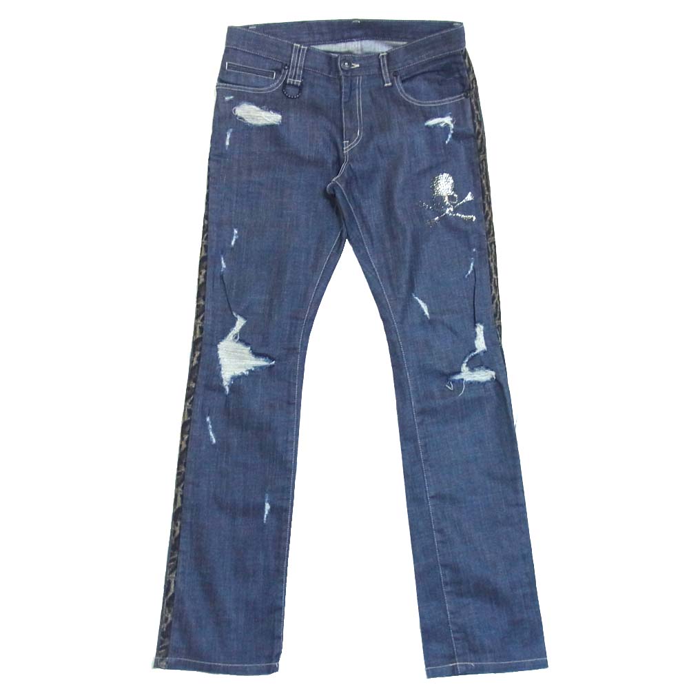 ROEN ロエン スワロフスキー スカル レオパード サイドライン ダメージ パンツ インディゴブルー系 30【中古】