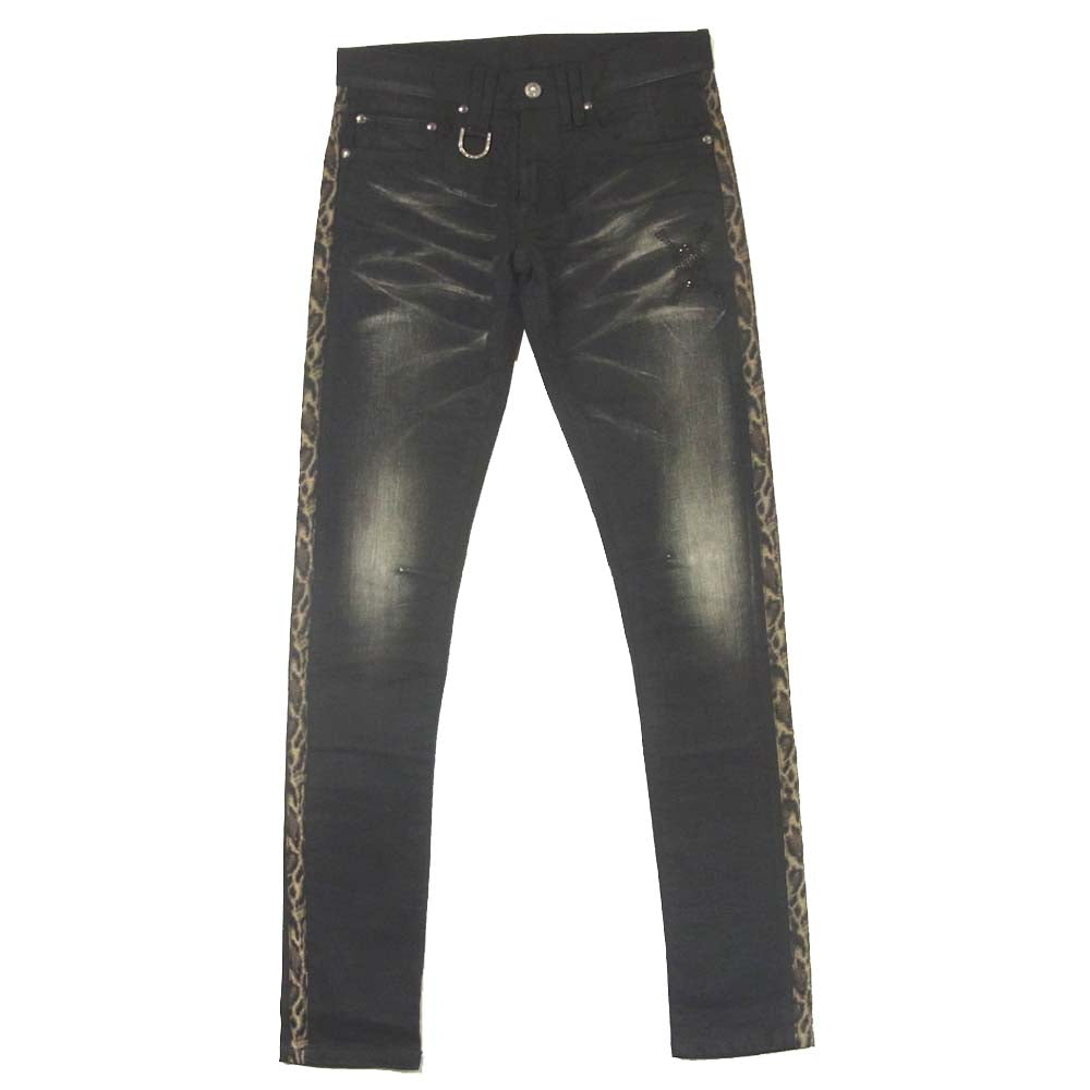 ROEN ロエン スワロフスキー スカル レオパード ライン ブラックデニムパンツ ブラック系 30【中古】