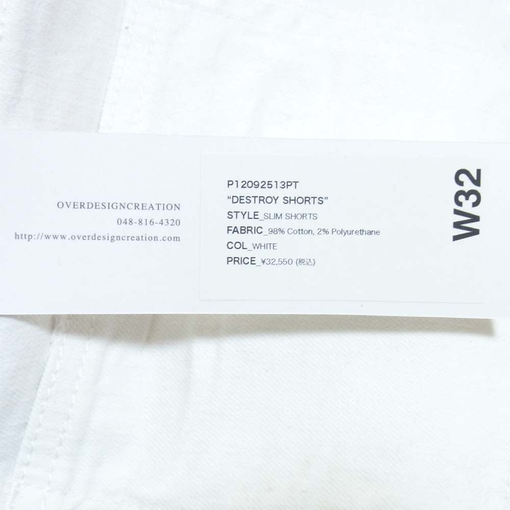オーバーデザイン ダメージ加工 ハーフパンツ ホワイト系 32【新古品】【未使用】【中古】