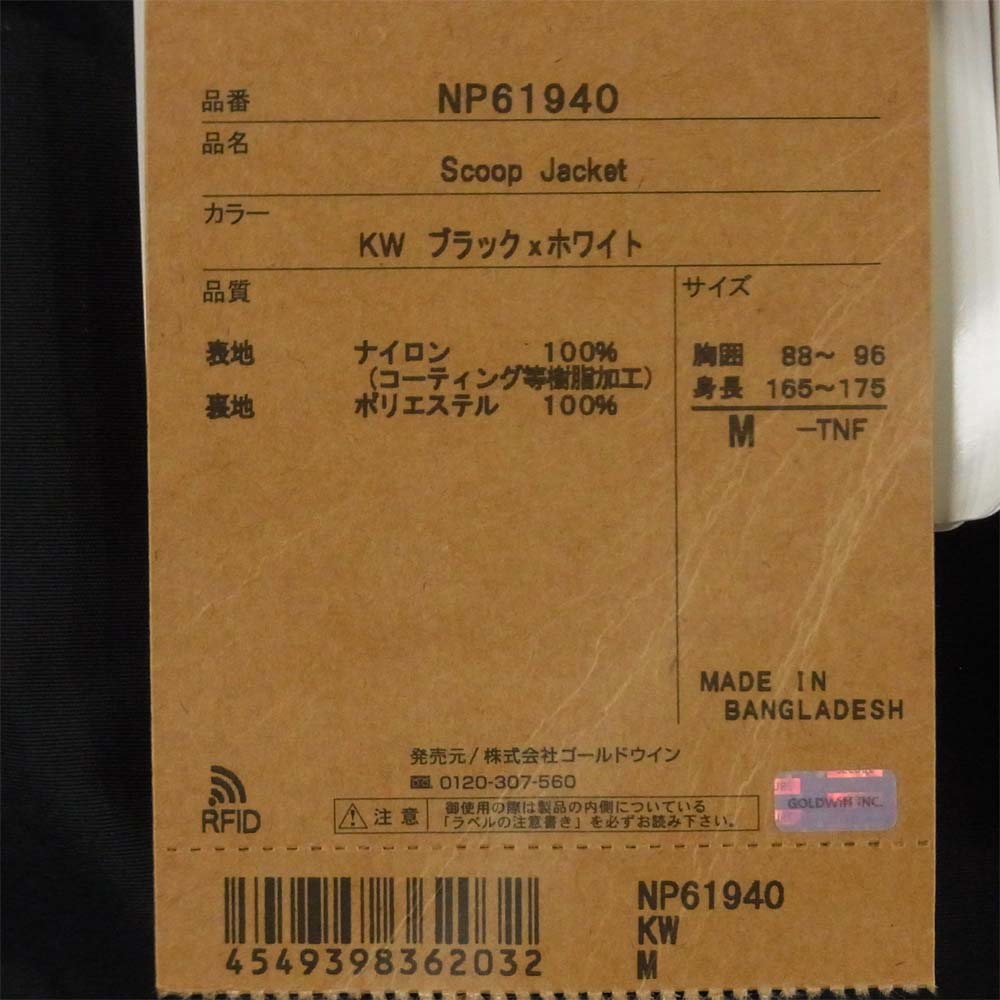 THE NORTH FACE ノースフェイス NP61940 SCOOP JACKET スクープ ジャケット KW ブラック ホワイト M【新古品】【未使用】【中古】