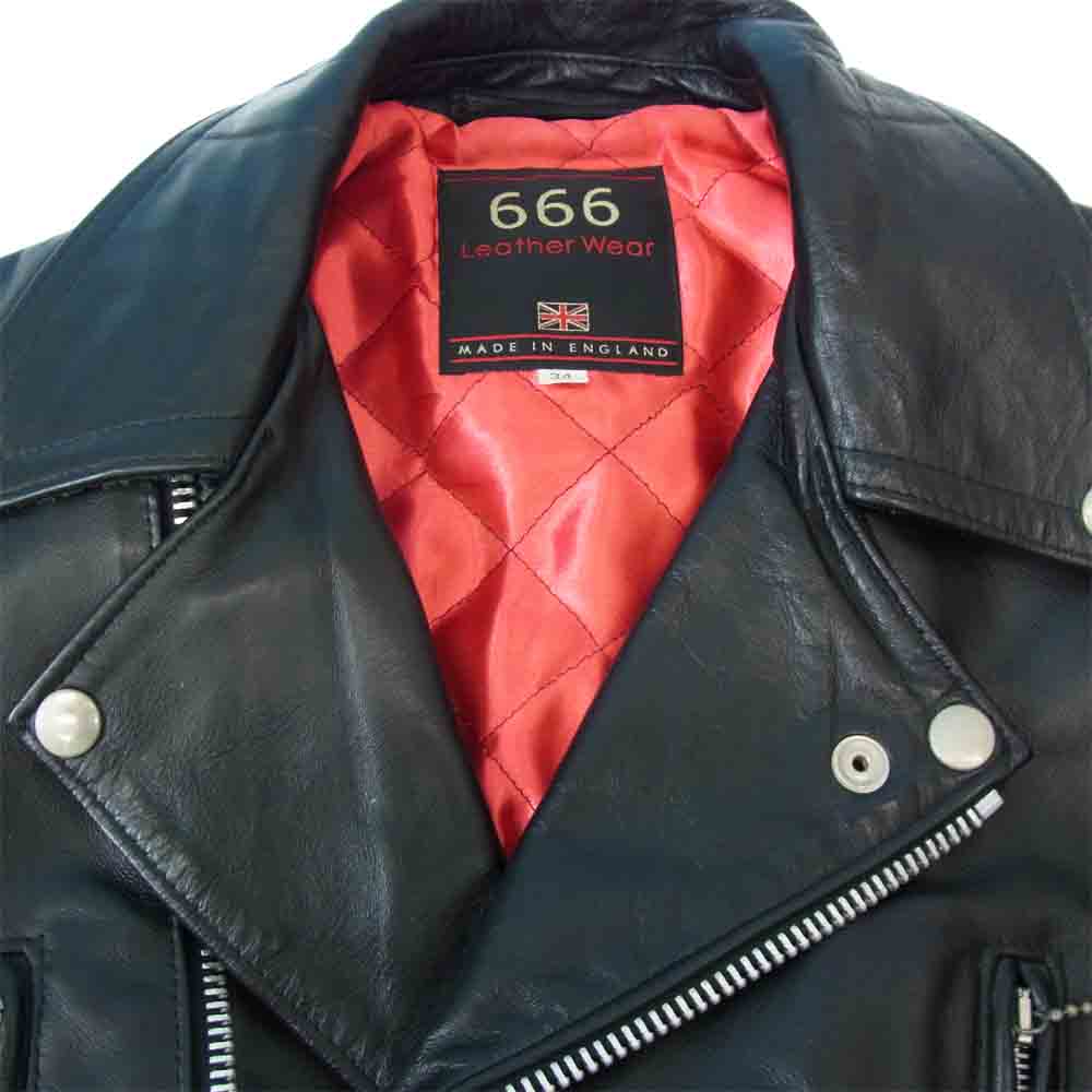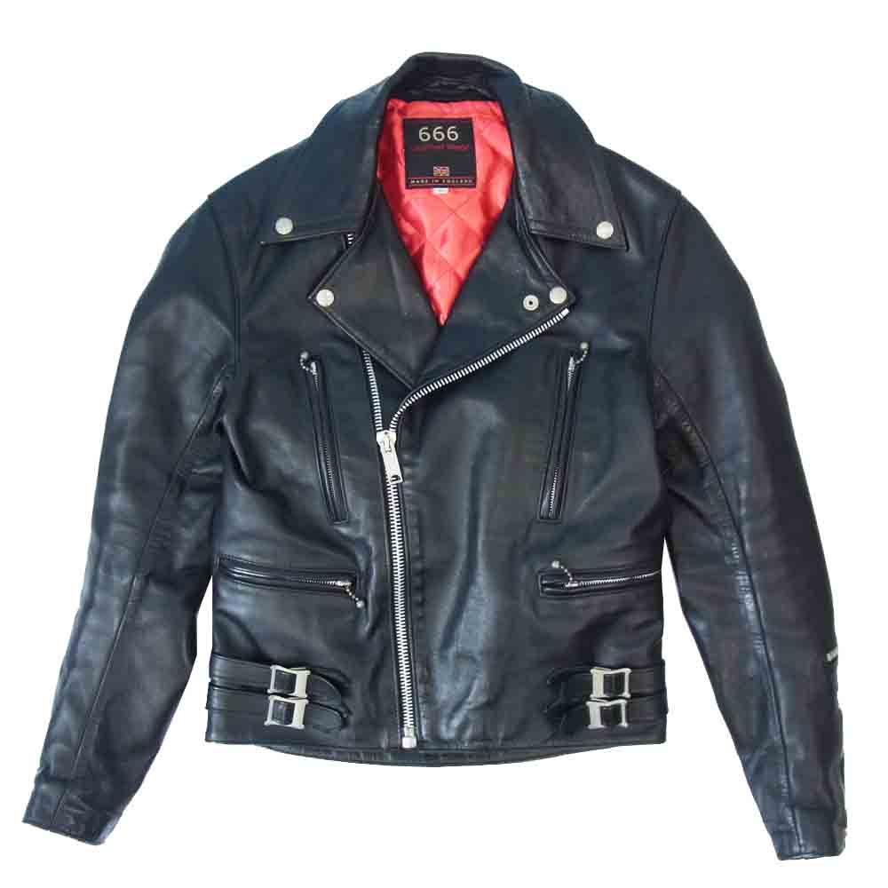 トリプルシックス 英国製 裏地キルティング サイドベルト レザー ダブルライダース ジャケット ブラック系 レッド系 34【中古】