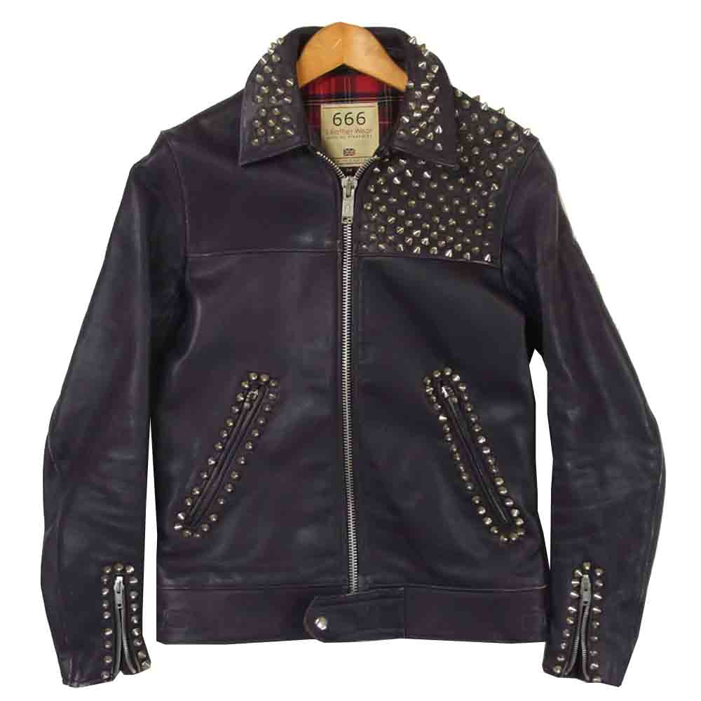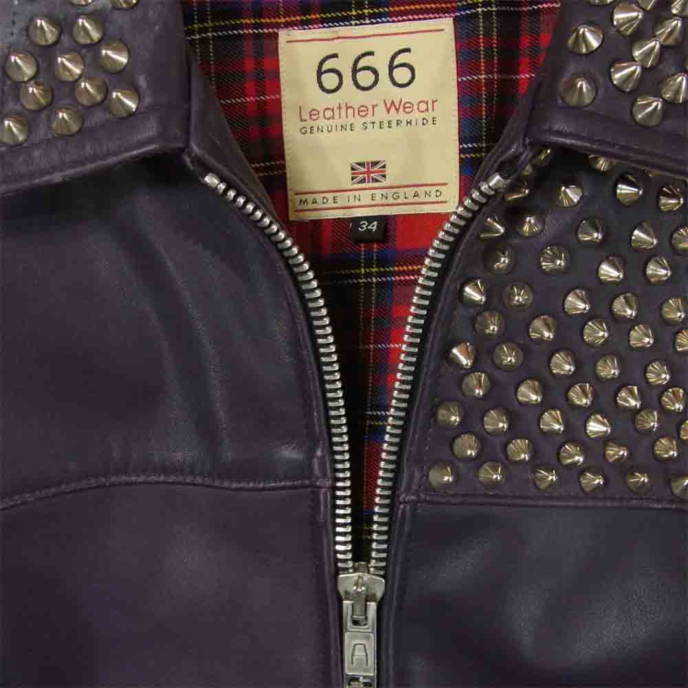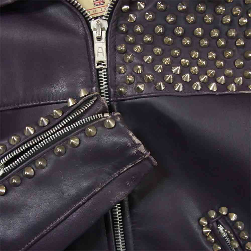 トリプルシックス スタッズ シングル ライダース ジャケット レザー イギリス製 パープル系 34【中古】