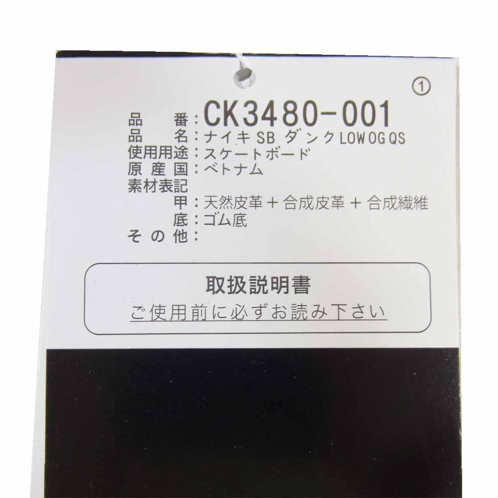 | 商品名 | 19AW CK3480-001 × NIKE SB DUNK LOW OG QS スケートボーディング ダンク ロー オリジナル クイックストライク スニーカー |