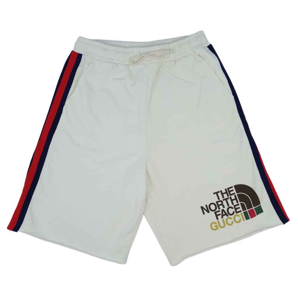 GUCCI グッチ 651727 XJDIP THE NORTHFACE ノースフェイス 国内正規品 ウェブ ストライプ ロゴ コットン ショートパンツ オフホワイト系 L【極上美品】【中古】