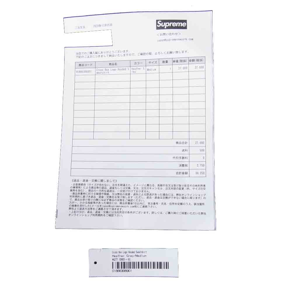 Supreme シュプリーム 20AW Cross Box Logo Hooded Sweatshirt グレー系 M【美品】【中古】