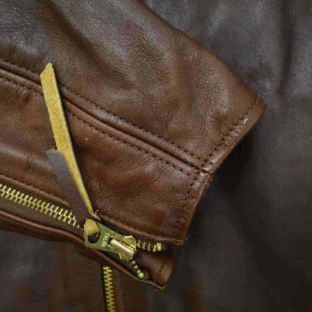 | アメカジで人気のブランド、The REAL McCOY'S ザリアルマッコイズ BUCO JH-1 JACKET BROWN ブコ ホースハイド ダブル ライダース レザー ジャケットです。ファスナー部分のレザーに使用感がありますが、全体的には大変綺麗でおすすめのアイテムとなっています。 |