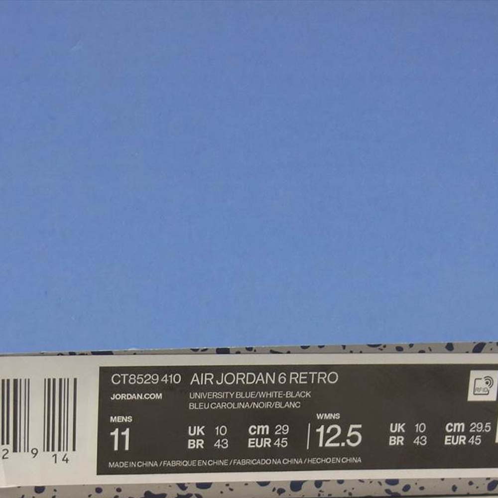 NIKE ナイキ CT8529-410 AIR JORDAN 6 RETRO UNC エア ジョーダン 6 レトロ 水色/白/黒系 29cm【美品】【中古】