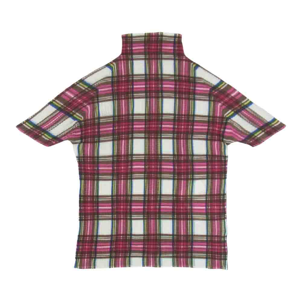 イッセイミヤケ プリーツ PP68FK508 ボックスプリーツ チェック柄 ボルトネック カットソー 半袖 マルチカラー系 3【美品】【中古】