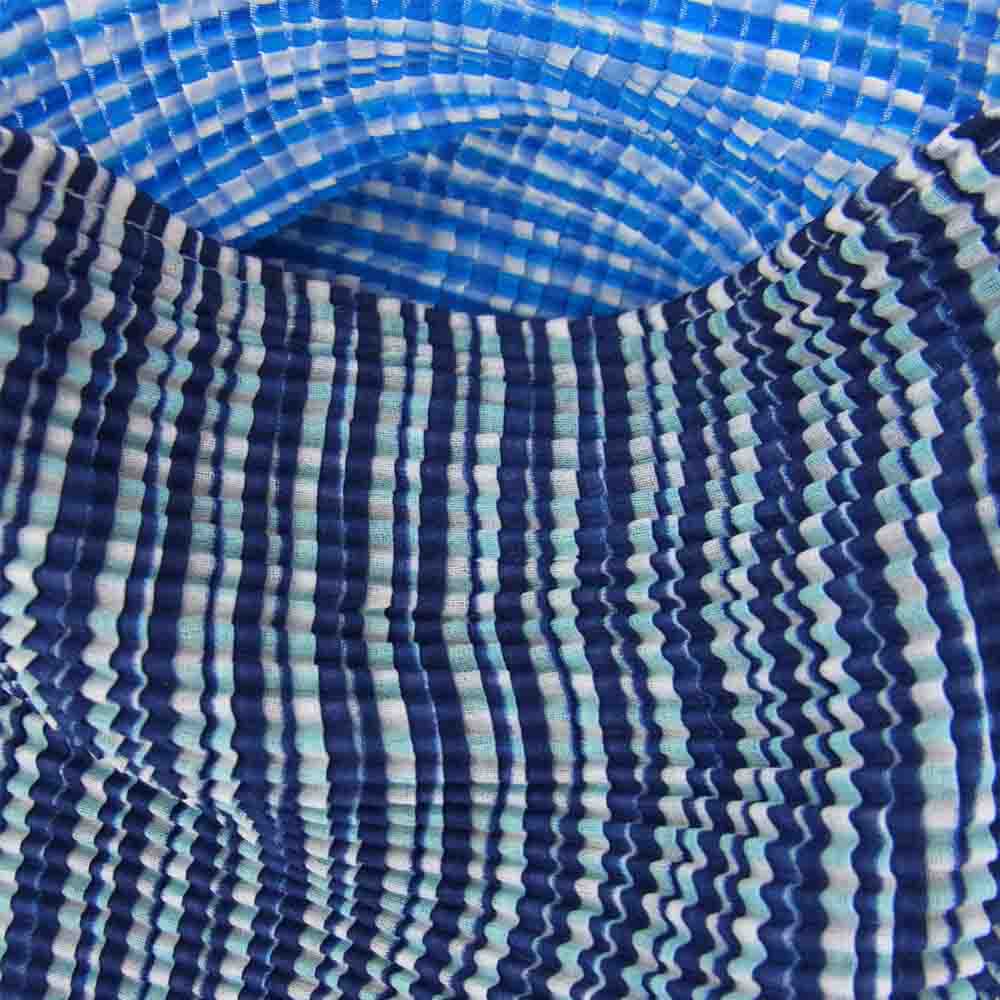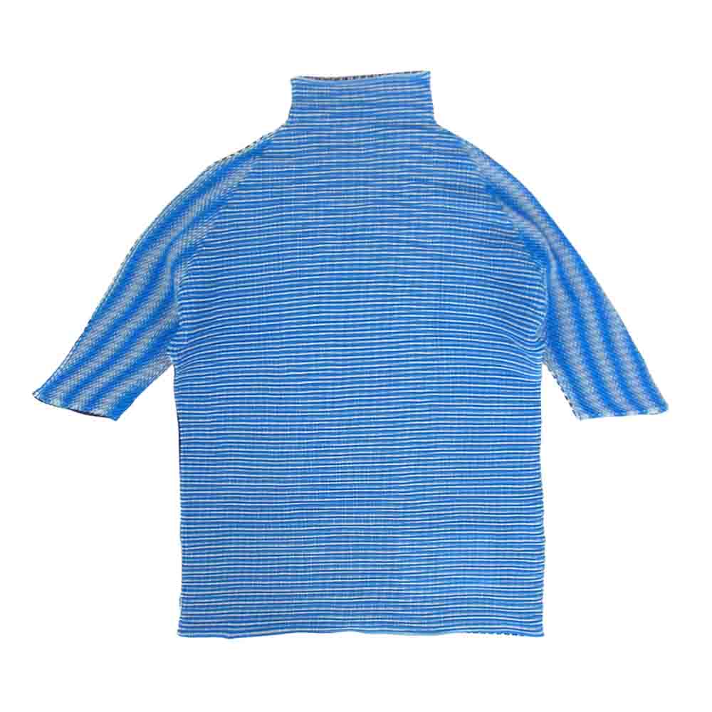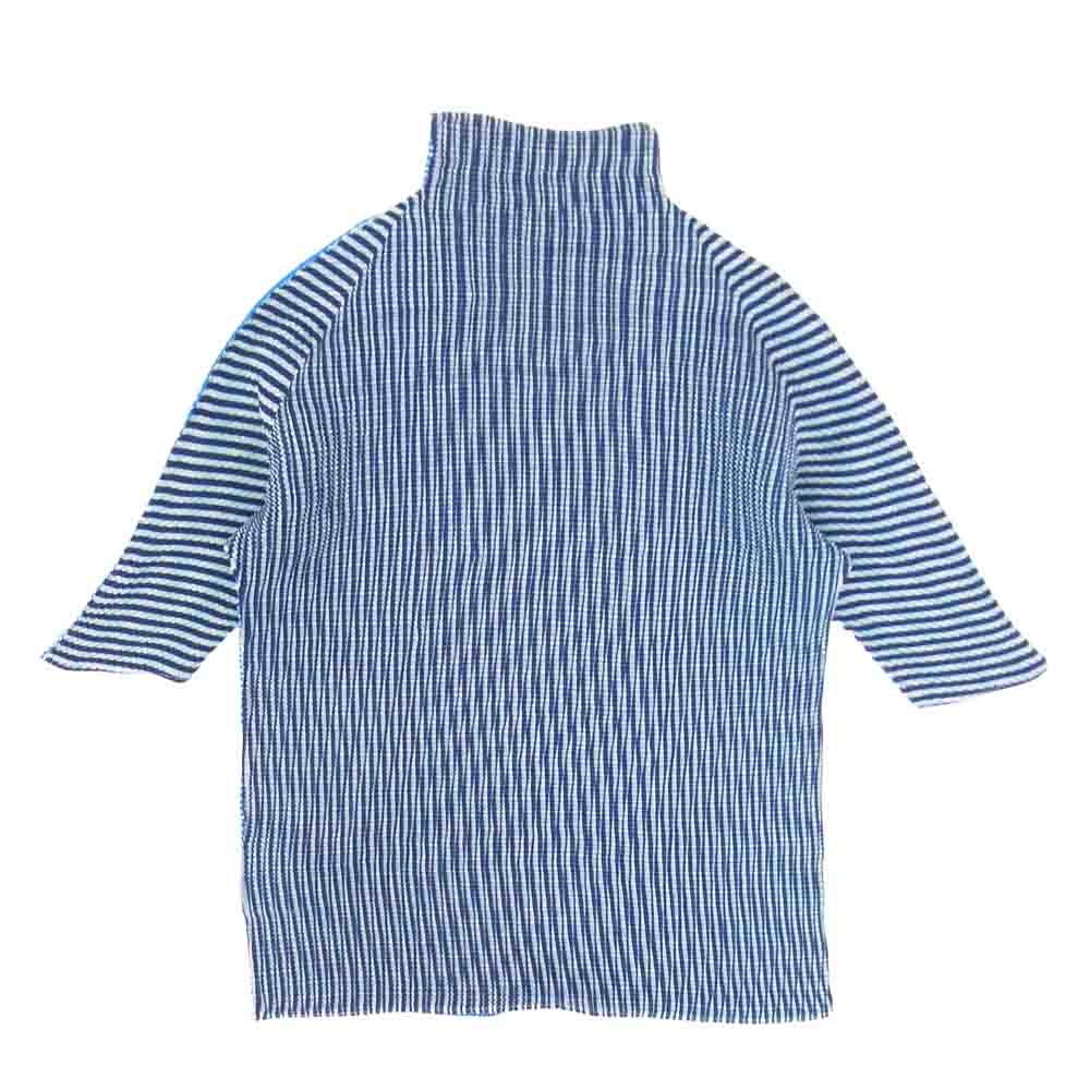 イッセイミヤケ プリーツ PP16FK215 ボックスプリーツ ストライプ ボトルネック カットソー 半袖 青 ブルー系 3【美品】【中古】