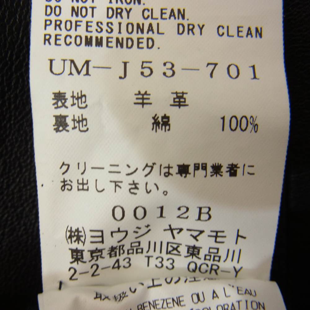 Yohji Yamamoto ヨウジヤマモト S'YTE UM-J53-701 Sheepskin Leather Washed China Jacket シープスキン レザー ウォッシュド チャイナ ジャケット ブラック系 3【新古品】【未使用】【中古】