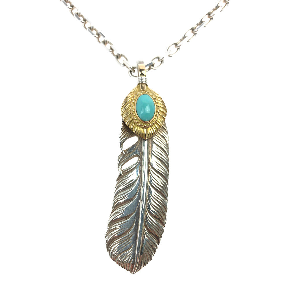 | 商品名 | T-51p 上金ターコイズ ハートフェザー ペンダントトップ 70mm 太50cmチェーン ネックレス |