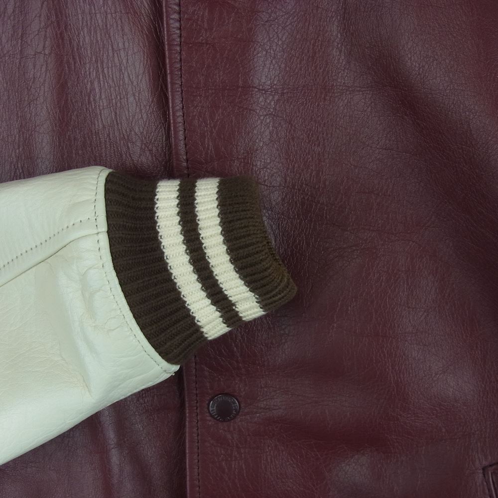 WACKO MARIA ワコマリア VIRSITY JACKET オールレザー ヴァーシティ ジャケット スタジャン オフホワイト系 ボルドー系 S【中古】