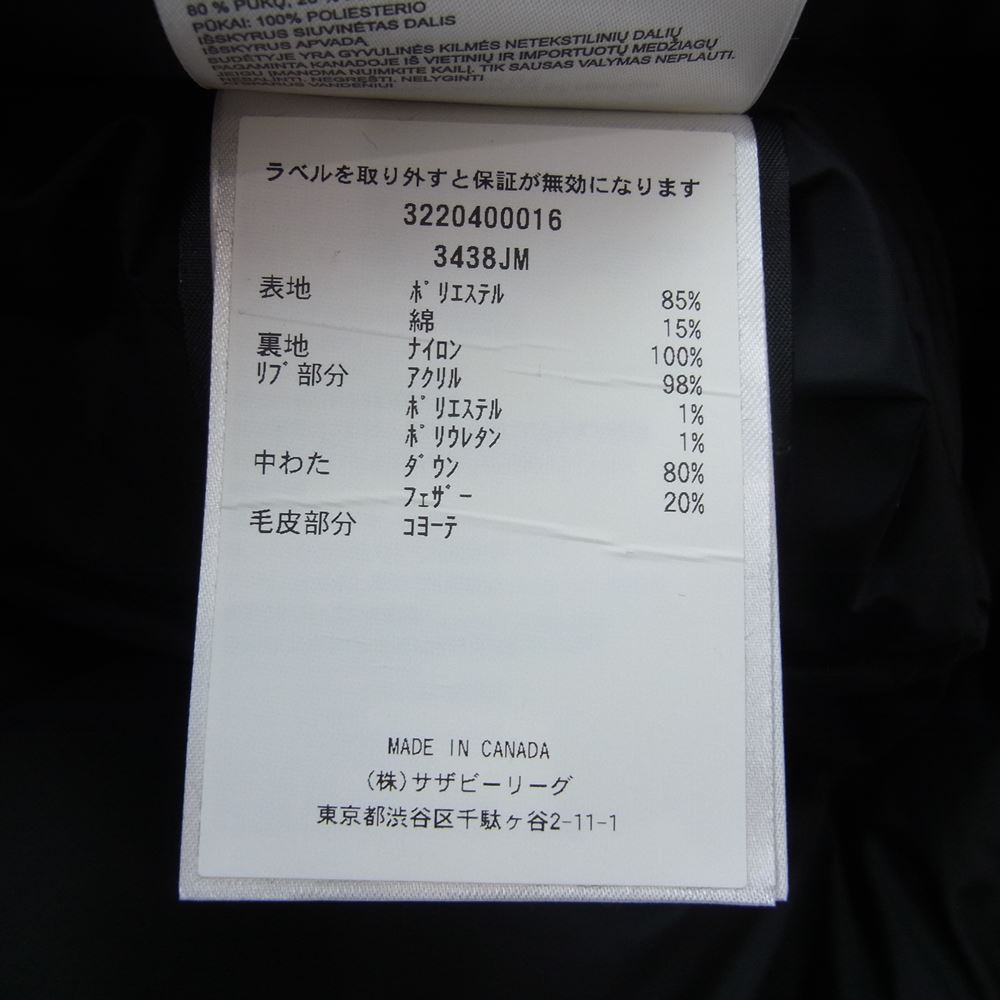 CANADA GOOSE カナダグース 3438JM JASPER PARKA ジャスパー パーカ ダウン ジャケット ブラック系 XS【中古】