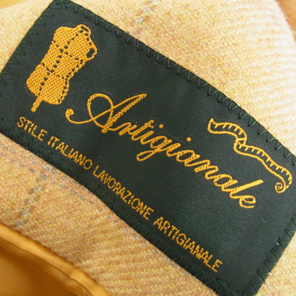 アルティジャナーレ JK-F-RS3B-20 ウール カシミヤ混 チェック テーラード ジャケット イエロー系 48【中古】