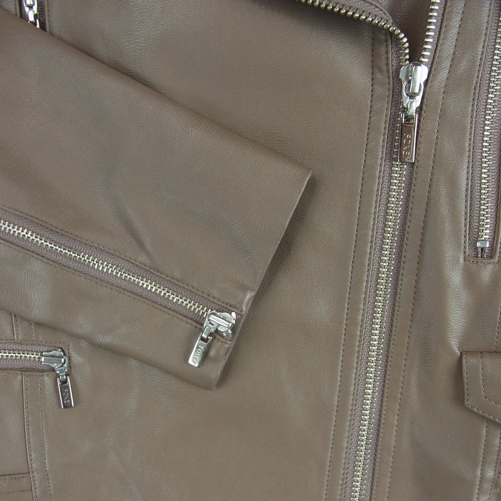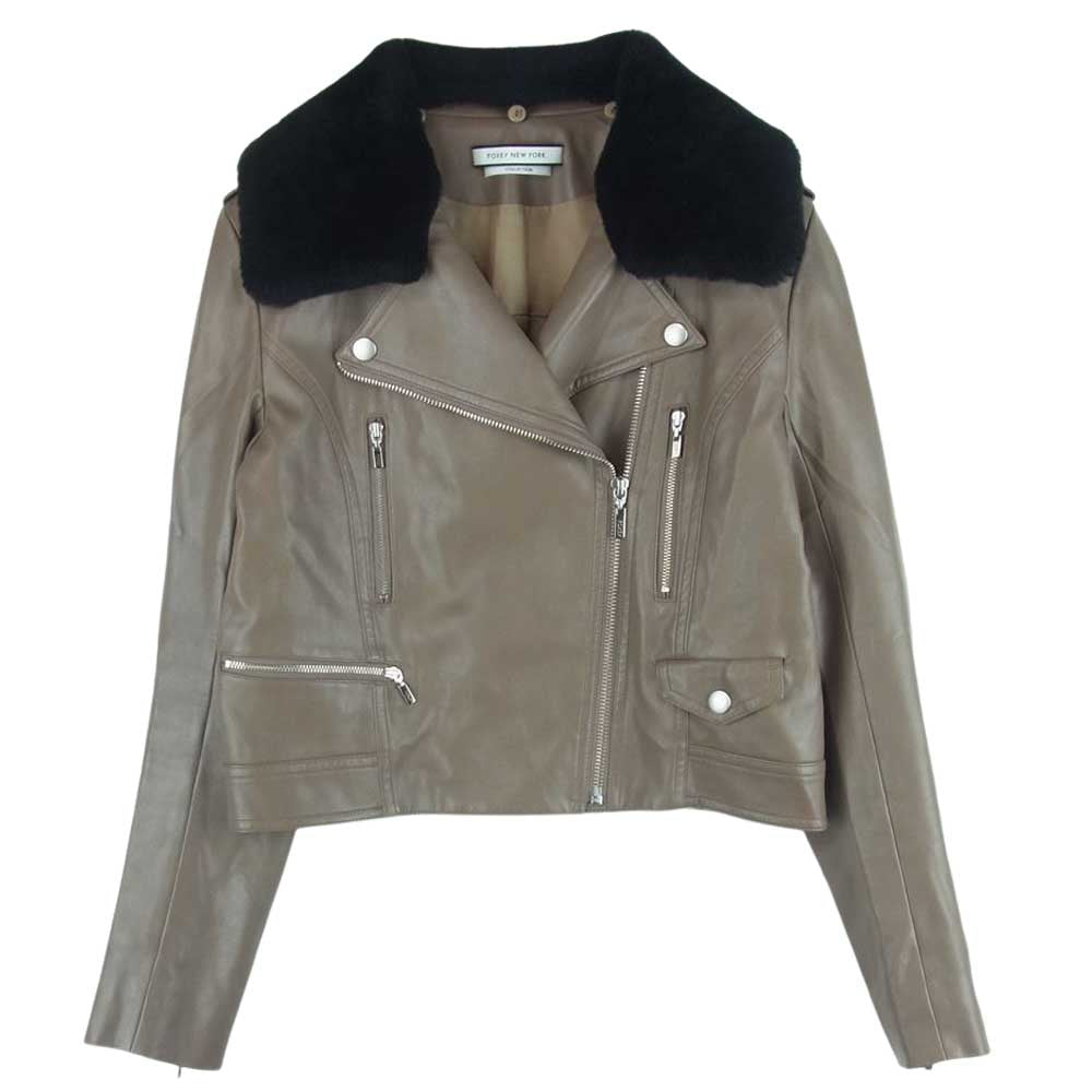 FOXEY フォクシー 36085-MAJFG105TN NEY YORK ニューヨーク 国内正規品 襟リアルムートン フェイクレザー ダブル ライダース ジャケット ブラック系 グレイッシュブラウン系 38【中古】