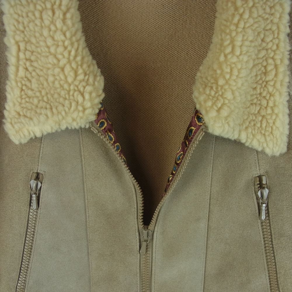 NUMBER(N)INE ナンバーナイン 03AW カート期 アーカイブ 宮下貴裕本人期 襟ボア ニット切替 カウスエード レザー ジャケット ベージュ系 グレイッシュブラウン系【中古】