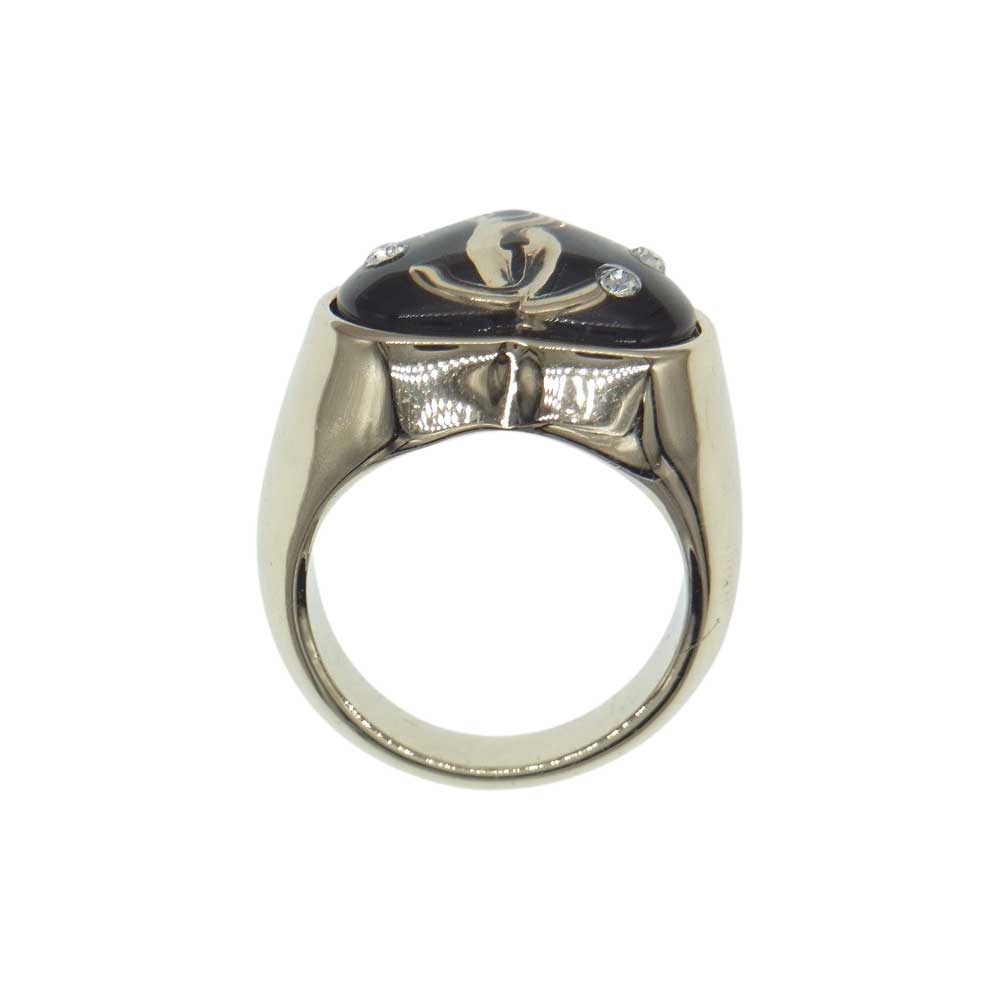 CHANEL シャネル D22 B ココマーク ラインストーン ハート リング シルバー系 16号【中古】